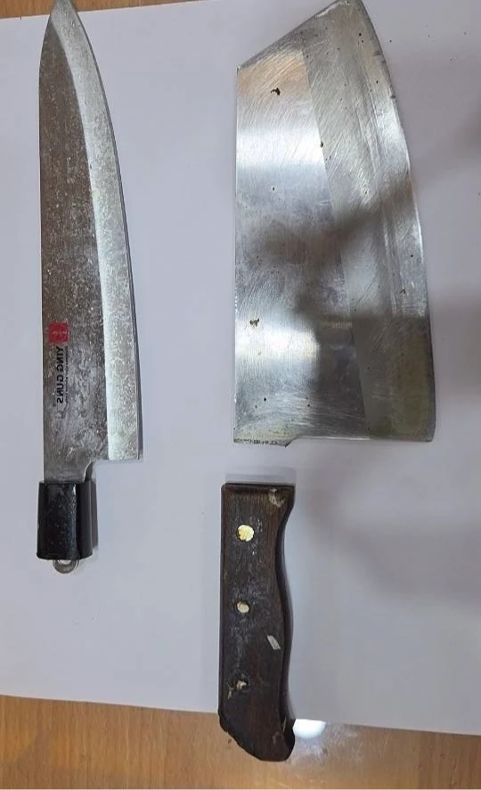 據悉,家住新北市板橋區中正路的60多歲婦人,今天上午情緒激動,從家中拿出一把水果刀、菜刀,旋即走出屋外在住處附近巷弄內閒晃,時而追著路過騎士,嚇壞路過學生及上班民眾,趕緊報警協處。