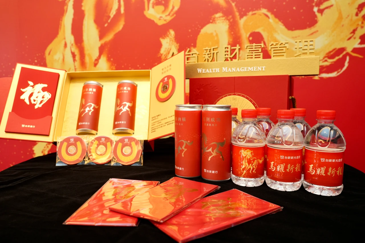 除限量財富管理貴賓專屬禮盒外,包國儀説,台新銀也於全台101家分行準備5萬8888分經金山財神廟祈福的開運發財金、8萬8888瓶吸附滿滿銀行金庫財氣的開運水,以及5888個YBO兒童會員專屬的馬年主題小提燈,送給臨櫃辦理業務的客戶。