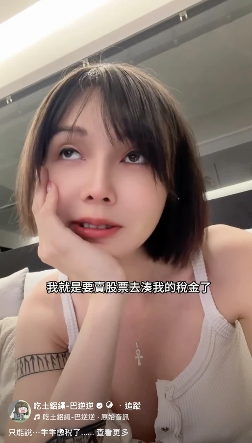 她抱怨申報結構複雜,除非能精確舉證哪些收入屬於境外觀眾,否則不僅要先課徵5%的營業稅,還要再以6%的淨利去乘上個人所得稅計算。最讓她頭痛的是,國稅局這次是一次性抓出過去5年的帳目要求補繳,讓她直呼這筆帳單實在太過沉重。巴逆逆透露自己目前的稅金多到需要申請分期付款來償還。