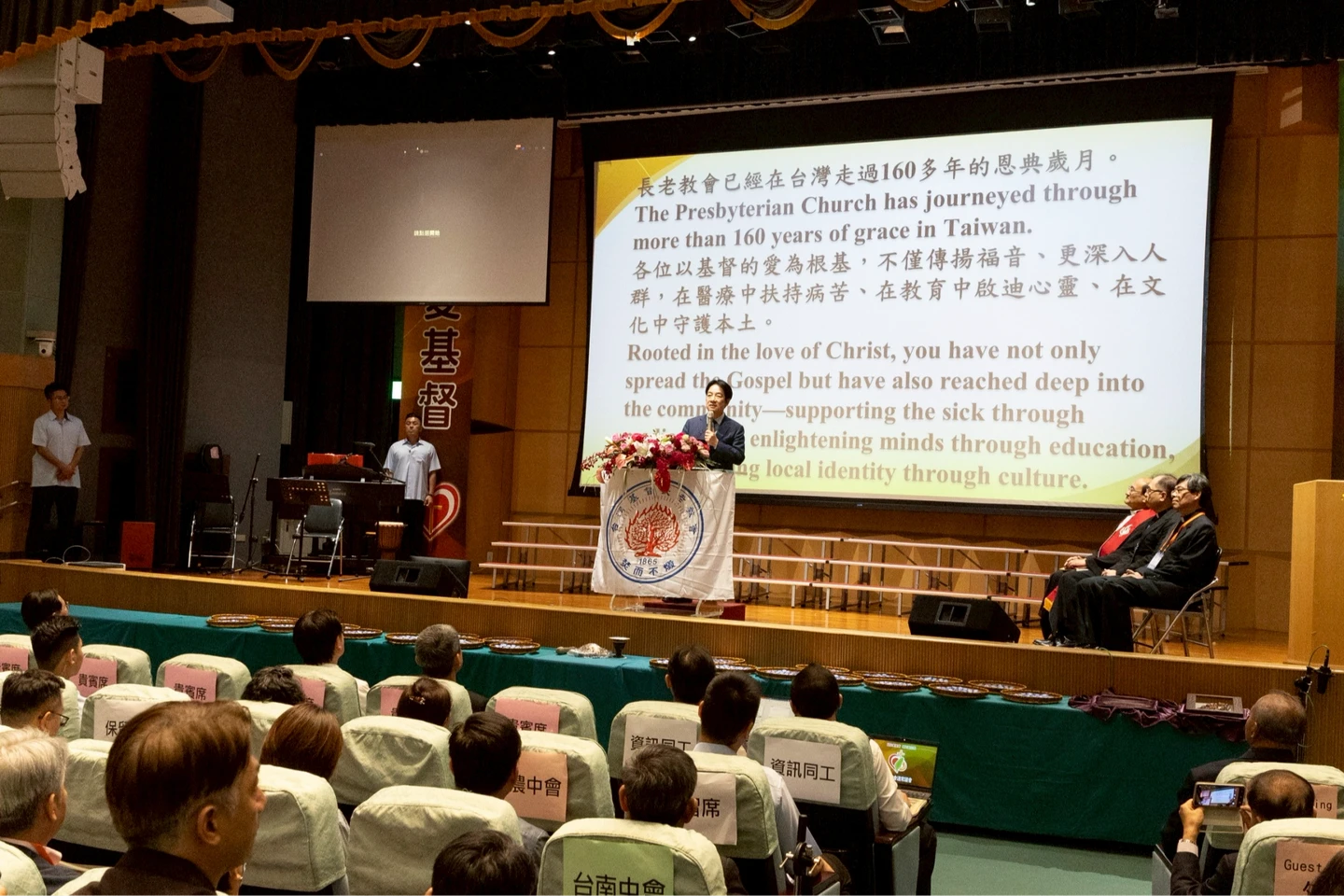 賴清德下午出席台灣長老教會第71屆總會通常議會,致詞提到,本次會議有來自全台灣600位的牧長代表,及多國的代表參與盛會,感謝各位弟兄姊妹共同關心教會,也共同深耕社會。今年度主題「同心愛基督、團結顧台灣」不僅是一個目標,更是一項使命,代表著台灣基督長老教會關注的不僅僅是會眾,也關心全體社會大眾。