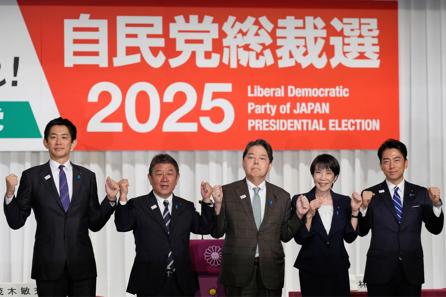 日本自民黨黨魁選舉10月4日舉行投開票,將選出石破茂在上任不到1年即辭去首相的黨魁之位。5名候選人之中,以44歲現任農林水產大臣小泉進次郎和64歲前經濟安全保障擔當大臣高市早苗這兩人領先,64歲官房長官林芳正支持率排第3,69歲前幹事長茂木敏充和50歲前經濟安保大臣小林鷹之進入第二輪最終投票的機率最低。
