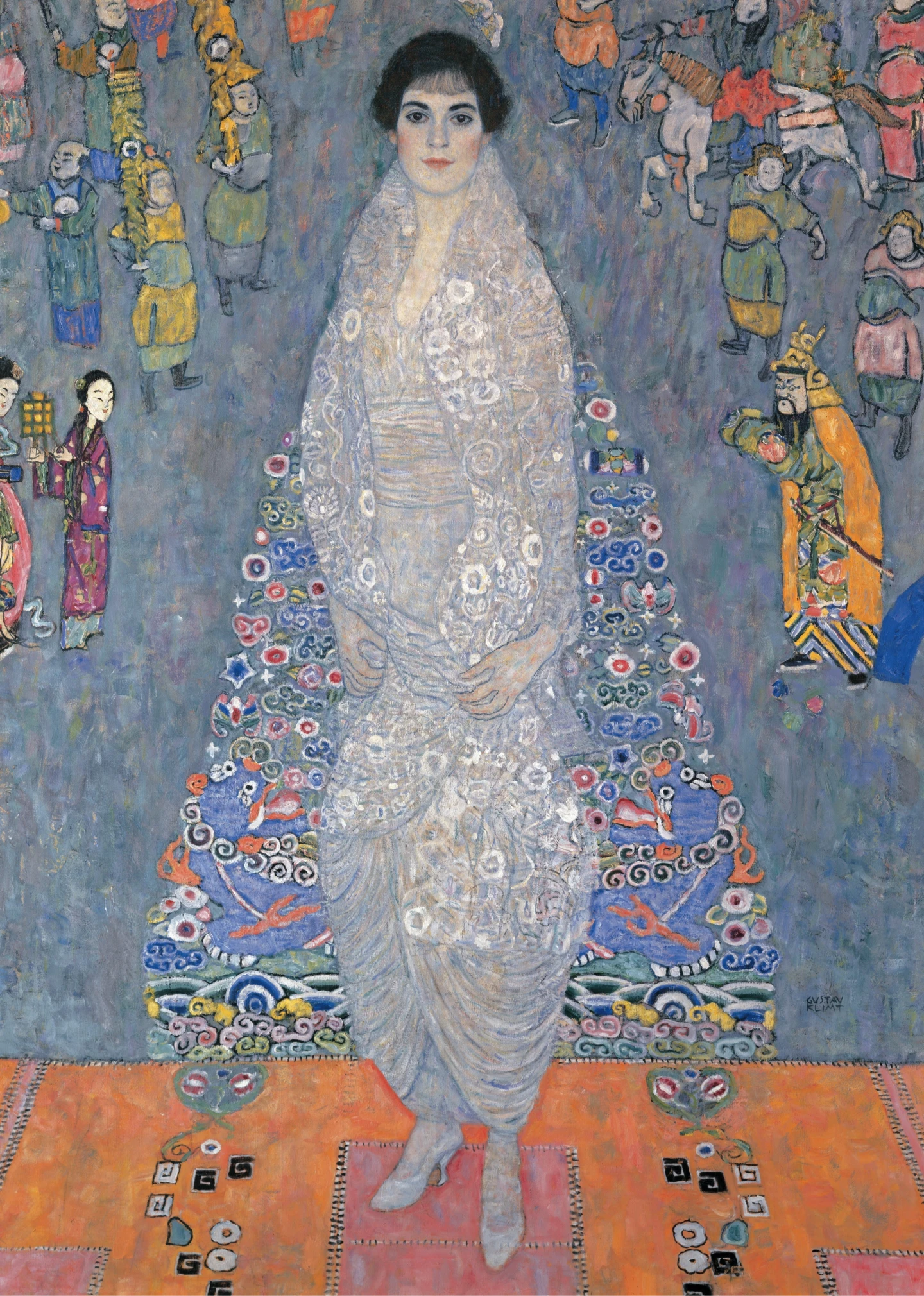 這幅畫清晰描繪萊德勒(Lederer)的形象,她是一位女繼承人,也是克林姆贊助人的女兒。畫中,她身穿白色長袍,站在一幅飾有亞洲圖案的藍色掛毯前。