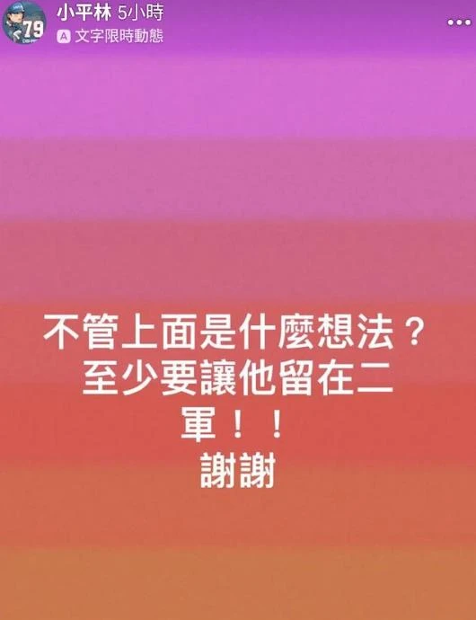 面對樂天桃猿球團在奪冠後竟光速拔帥的作法,不只球迷罵聲連連,連樂天桃猿球員也看不下去,老將林智平在社群痛批「難看」!他直言:「不管上面是什麼想法?至少要讓他留在二軍!!謝謝」林智平還另外PO出「拜託」兩字的限動。