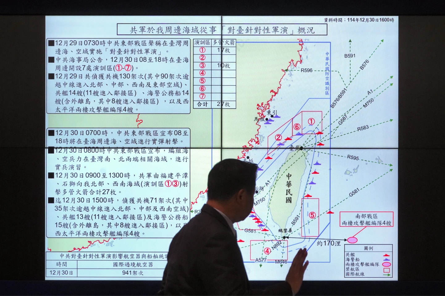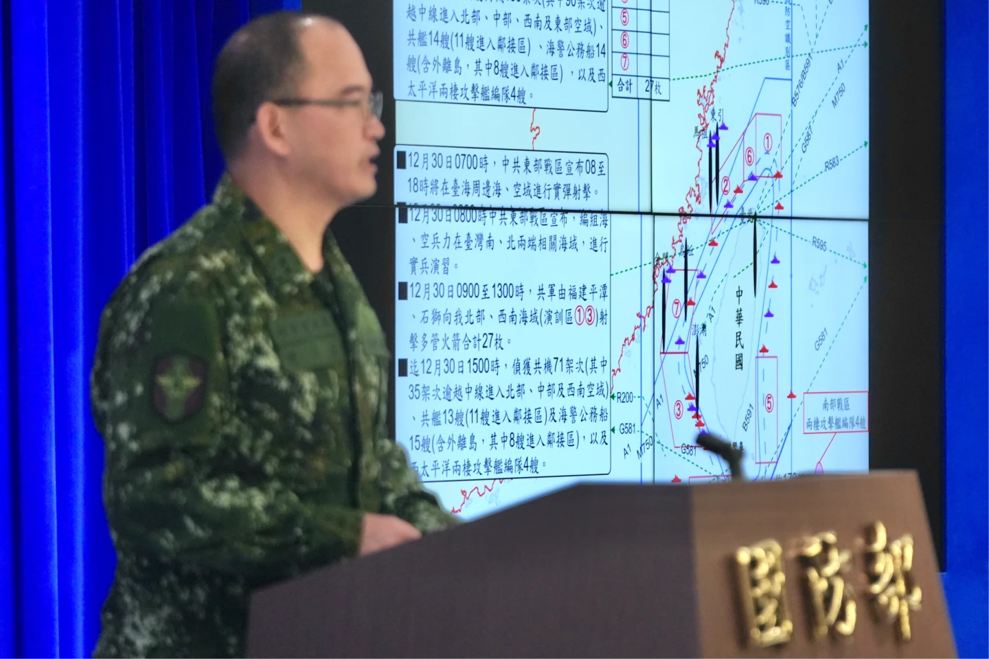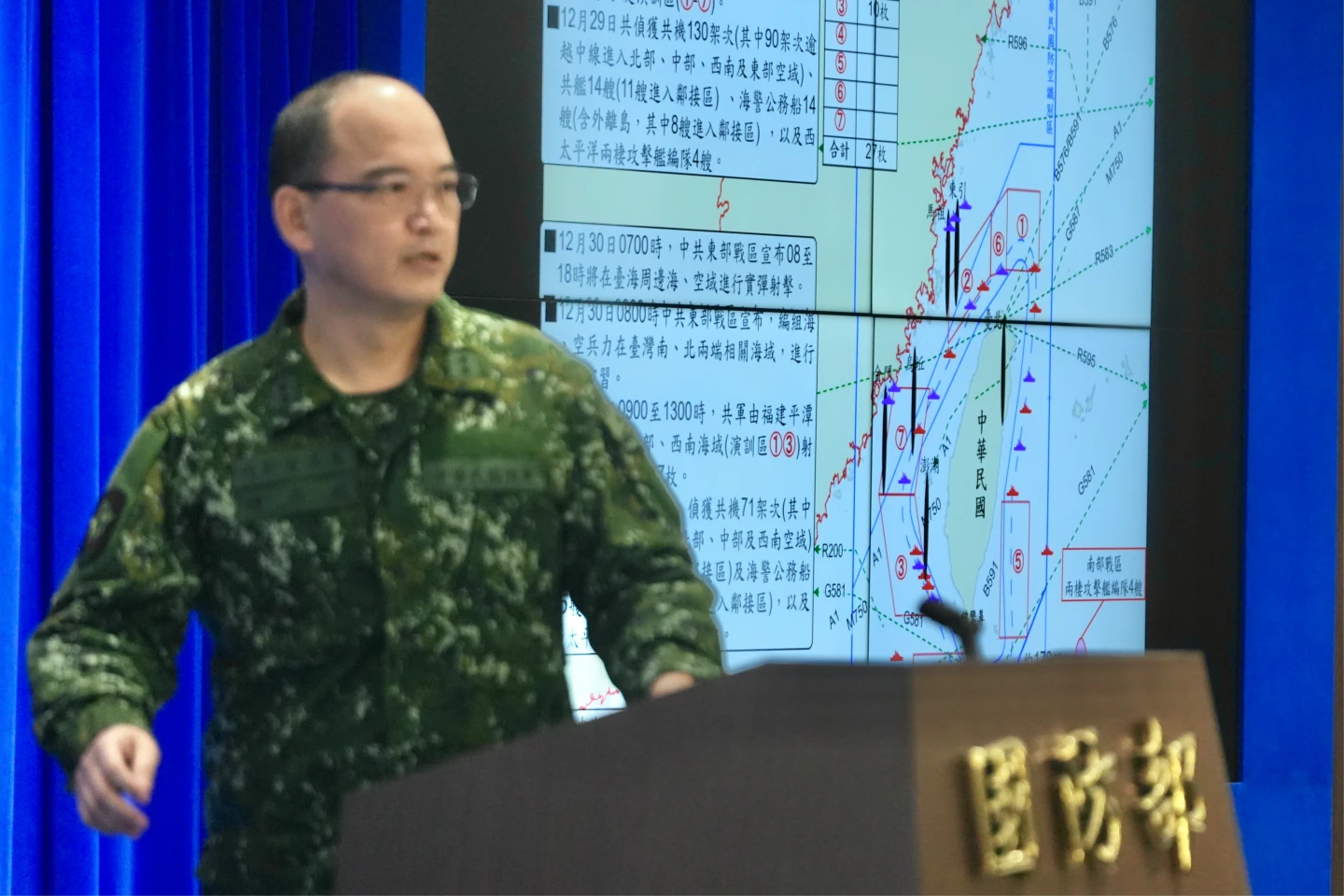 【記者陳力維/綜合報導】國防部於今(30)日傍晚召開臨時記者會,情報參謀次長室次長謝日升中將證實,中共解放軍於今日上午9時至下午1時,分別由福建平潭與石獅區域,向台灣北部及西南海域發射兩波次多管火箭,共計27枚。謝日升強調,此次實彈演習的落彈點確實較以往更接近台灣陸地,部分彈著點甚至進入我方24浬鄰接區界線內,顯示共軍刻意傳遞壓迫訊息。