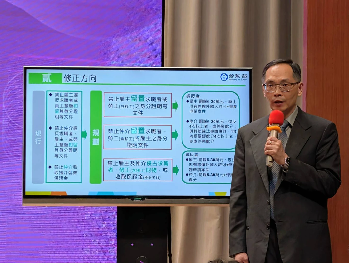 陳明仁解釋,勞動部是以保障勞權為出發點,這次修正《就業服務法》,主要是因為國際 ILO「強迫勞動」指標中有一項是「扣留身分證明文件、限制勞工人身自由」,雖然現行《就業服務法》已經規定禁止違背勞工意願留置證件,但實務上常衍生出「同意留置」情形,也發生很多爭議,長期觀察結果認為應該做修正,讓雇主不必去從事這樣的行為,導致增加強迫勞動風險,也讓勞工可以完整落實持有、保管身分證件的權限,是本次修法的主要重點。