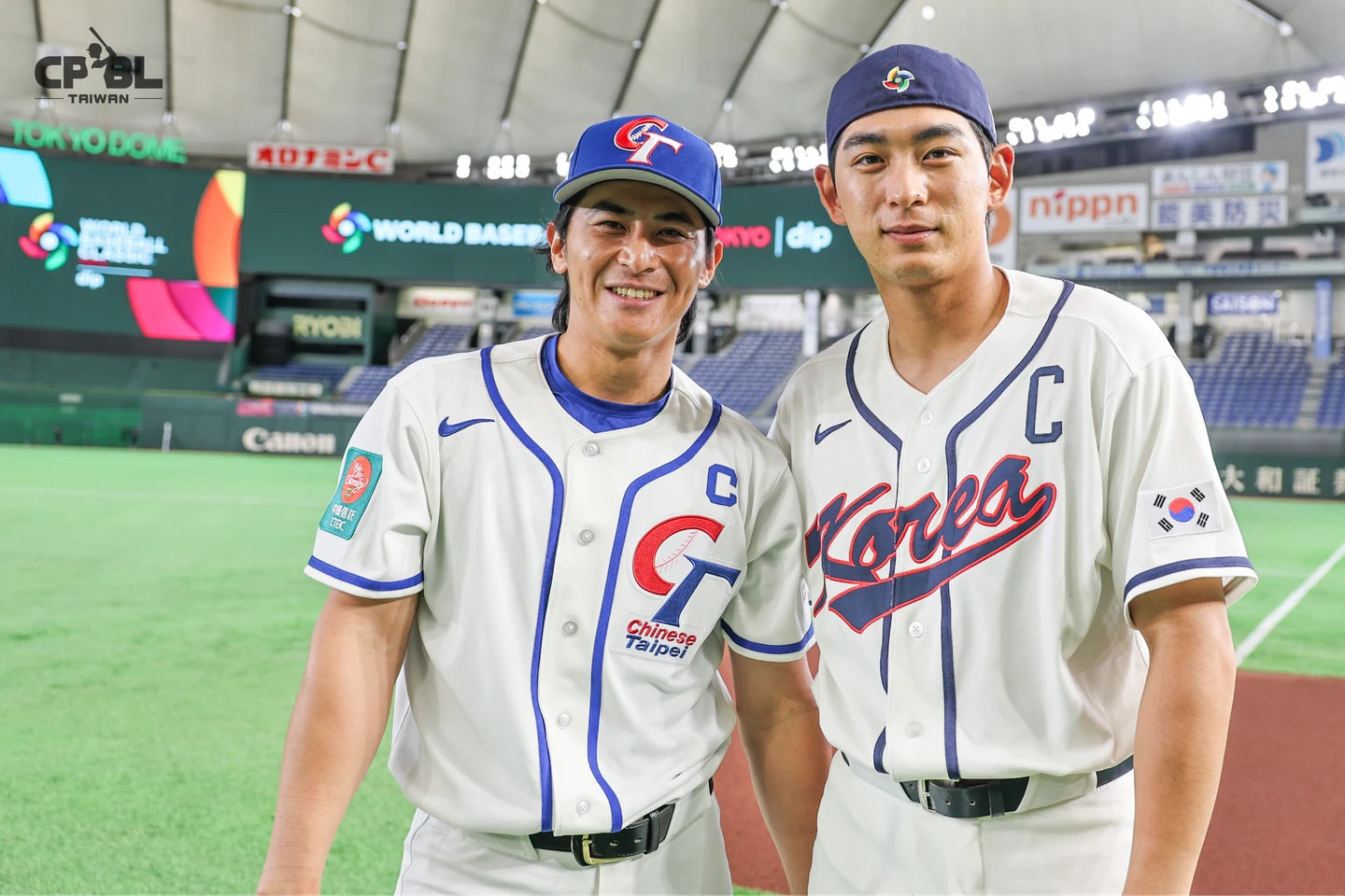 【記者毛琬婷/東京報導】第6屆世界棒球經典賽(WBC)C組預賽將在5日開打,中華隊預賽首戰將交手澳洲隊,而在上午官方練球時間結束後,緊接著到東京巨蛋進行練球的正好是韓國隊,「台灣隊長」陳傑憲化身小粉絲,透過翻譯詢問後獲得與李政厚合照的機會,對於外界讚他跟李政厚長得很像,陳傑憲謙虛地笑著說:「我覺得他帥多了啦!」