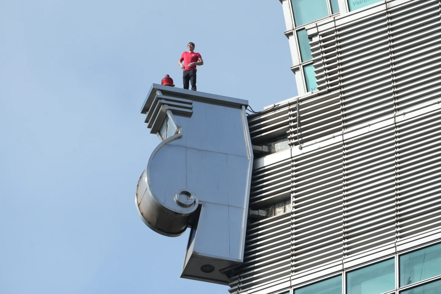 現場觀眾氣氛瞬間凝結,只見他展現驚人的核心力量,在一連串令人心跳停止的擺盪後,精準地翻越這道「反重力」大樓結構天險,驚魂一刻完美詮釋人體極限。而一旁以鋼索垂懸的攝影工作人員,同樣冒著生命危險全程記錄霍諾德的世紀壯舉,令人也為他們捏一把冷汗。