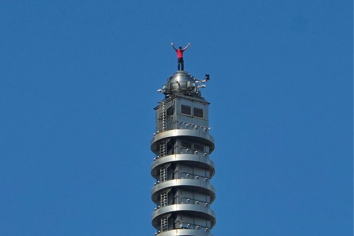 歷史性的一刻!歷經一個多小時的奮戰,艾力克斯霍諾德終於在台北時間上午10時45分,翻越最後一道101大樓外牆,穩穩站上台北101的最高點。這一刻,信義區街頭爆發出響徹雲霄的歡呼聲,全球螢幕前的觀眾也放下心中大石。他以血肉之軀征服了508公尺的鋼筋巨獸,在完全沒有繩索保護下完成了這項被視為「不可能」的任務,正式為這場世紀挑戰畫下最完美的句點。