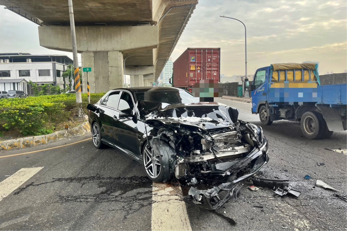 【記者王志弘/高雄報導】高雄鳳山今天發生驚悚車禍,有輛小貨車跟著前車搶快左轉,卻未注意對向賓士車疾駛而來,結果慘遭攔腰猛撞,2顆後輪當場噴飛,零件散落一地,所幸無人送醫。相關肇責仍待警方進一步調查。