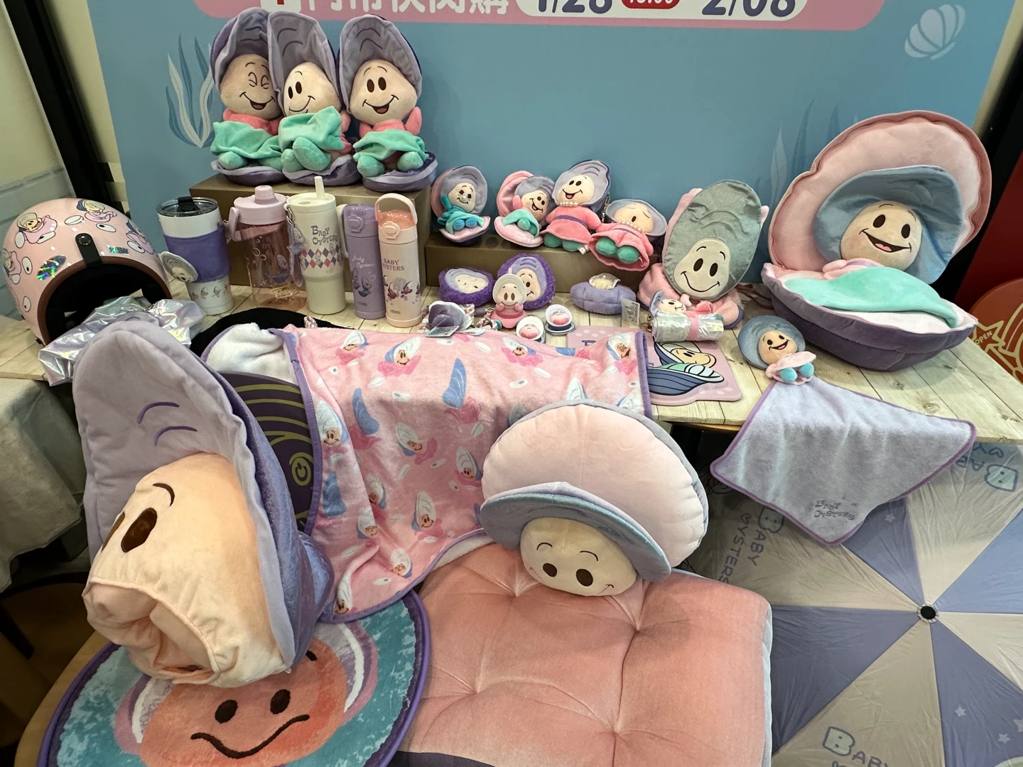 還有1月28日起人氣「迪士尼牡蠣寶寶系列周邊」全店精品集點登場。出自迪士尼經典動畫《愛麗絲夢遊仙境》裡故事片段的一群可愛牡蠣寶寶,因為戴著可愛帽子,常常因為害羞躲進紫色貝殼裡,天真呆萌的樣子意外擄獲一群粉絲,近年成為新的周邊商品新寵兒。7-ELEVEN掌握療癒肖像商機,推出逾41款系列周邊,主推牡蠣寶寶招牌造型燈、造型頭套、造型抱枕、膳魔師保溫瓶、安全帽、底片相機及花邊彎把折傘,價格從149元到1599元不等。
