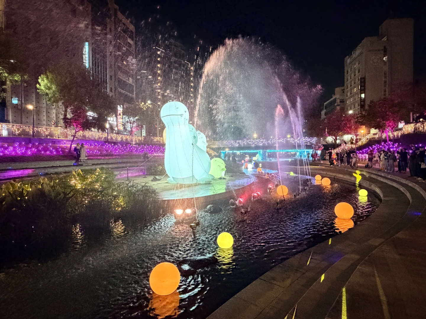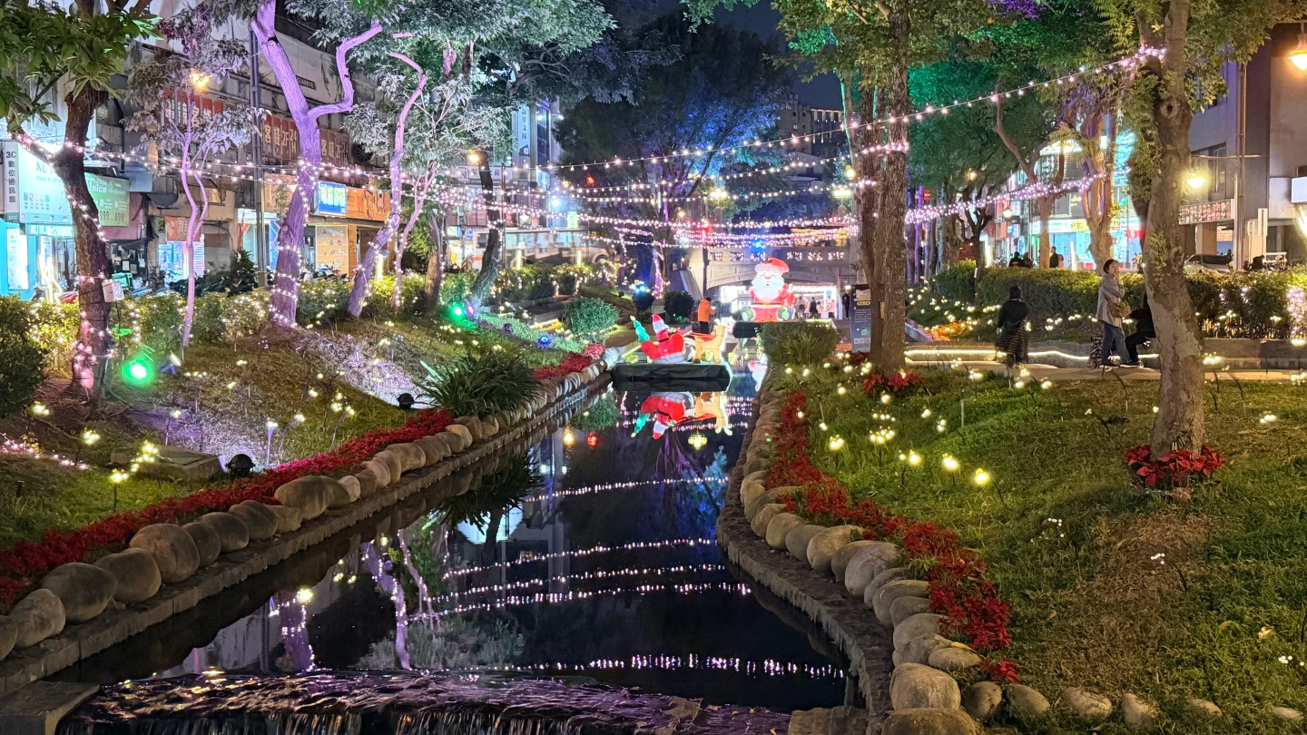 綠川沿線也同步點亮多個主題燈區,包括「幸福快遞」、「耶誕之森」,以耶誕老公公氣膜、麋鹿燈飾營造童話森林場景;涵洞區則打造「雪花光廊」,以莓粉色光影與水藍雪花燈片交織,延伸出甜蜜幸福角落,另有「歡樂迎光」、「喜樂微光」等燈區,呈現耶誕老人乘坐雪橇穿梭樹梢的歡樂畫面。