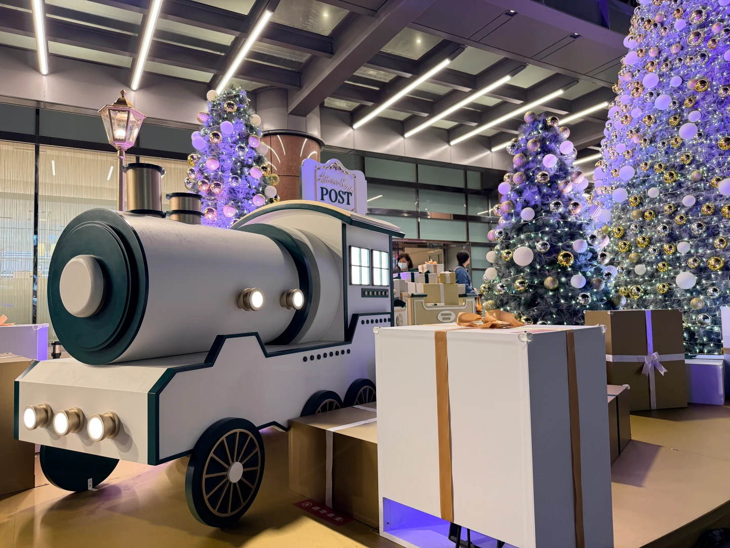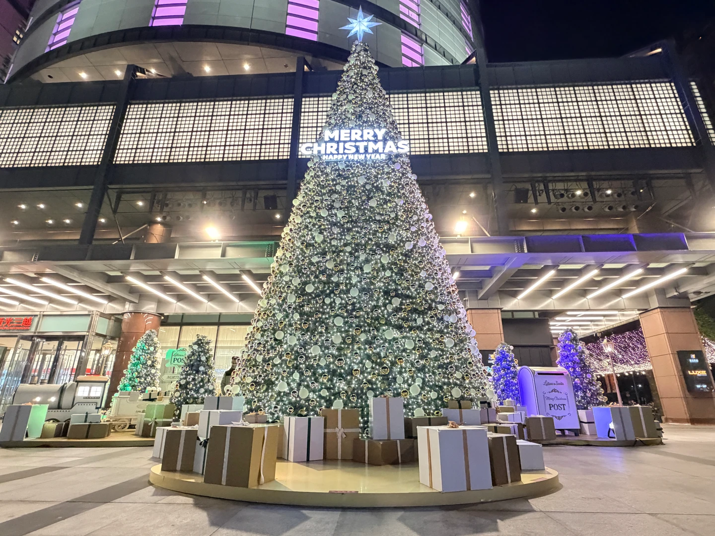 而台中新光三越中港店同樣成為耶誕焦點,在1樓水舞廣場打造高達12米的「浪漫雪花耶誕樹」,以植絨材質搭配金銀球飾,營造宛如冬季星河的光影效果,自即日起至明年1月2日開放參觀,成為情侶約會、親子共遊與社群拍照的必訪景點。廣場周邊並設置「幸福郵筒」、「耶誕禮物列車」,以及長達近百米的「流星隧道」,萬顆冰藍燈海交織,打造銀河漫步般的沉浸式體驗。