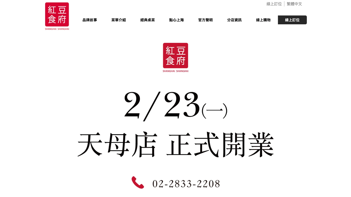 紅豆食府在官網張貼天母店正式開業資訊。取自業者官網 zoomin