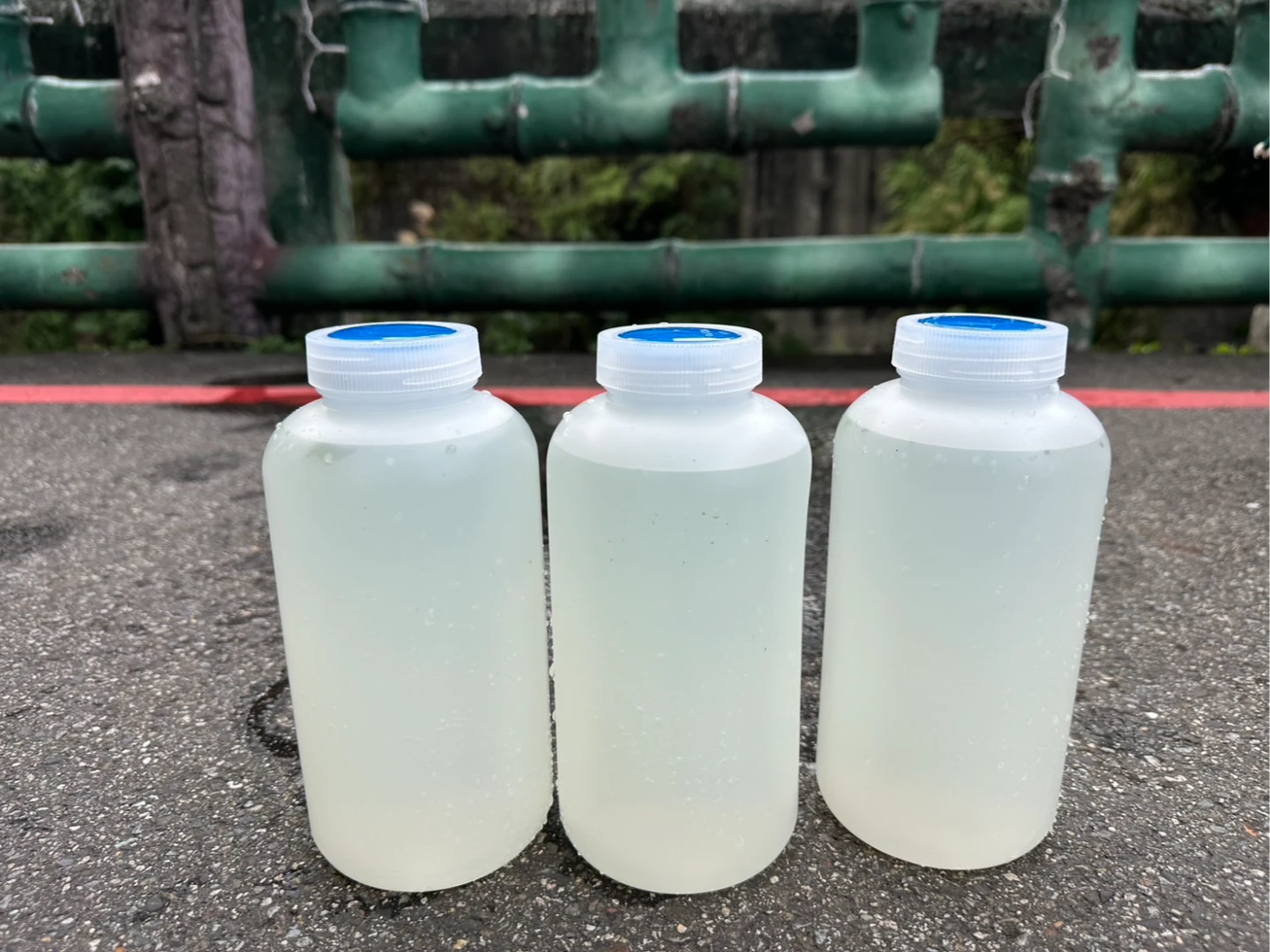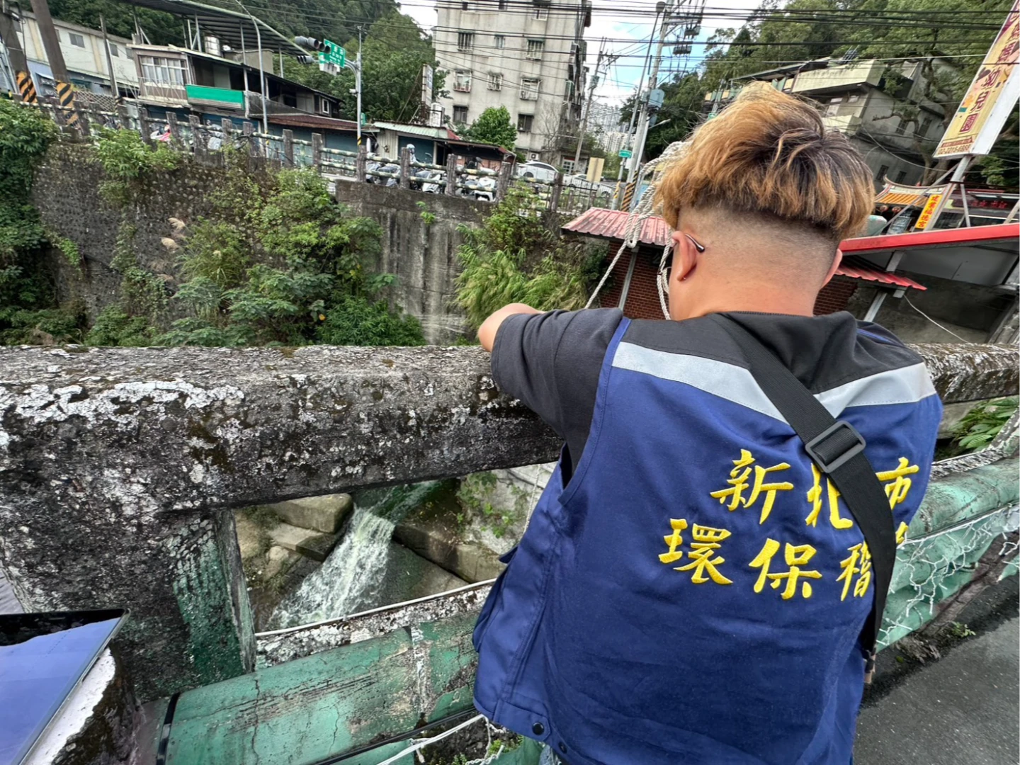 據悉,新北市環保局下午1時許接獲水污通報,立即派員前往新店區安康路3段355巷旁五重溪稽查,現場採集水樣檢驗水質,水色為透明偏淡綠色,pH7.70,水溫22.6度C,COD及重金屬未有急毒性反應。