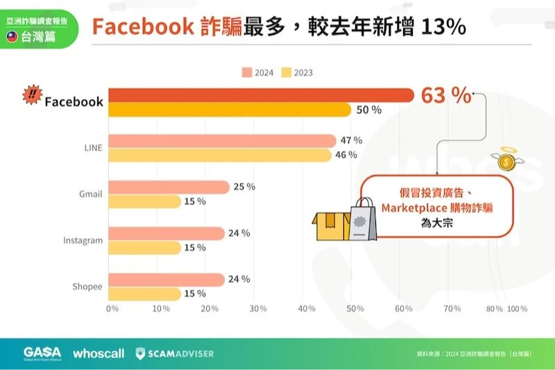 而去年GASA《亞洲詐騙調查報告》台灣篇也提及,台灣最常見詐騙訊息的社群平台是臉書(Meta)、LINE。另外,內政部統計,小紅書的APP是因2年內涉入1706件詐騙案件,共造成國人財損近2.5億元所以被封鎖。而根據警政署打詐儀表板統計,光是昨天一天,受理的詐騙損失金額就高達3.5億餘元。
