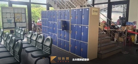 臻愛樓門口設有置物櫃供民眾放置大型包包或提袋之用。北市殯葬處提供 zoomin