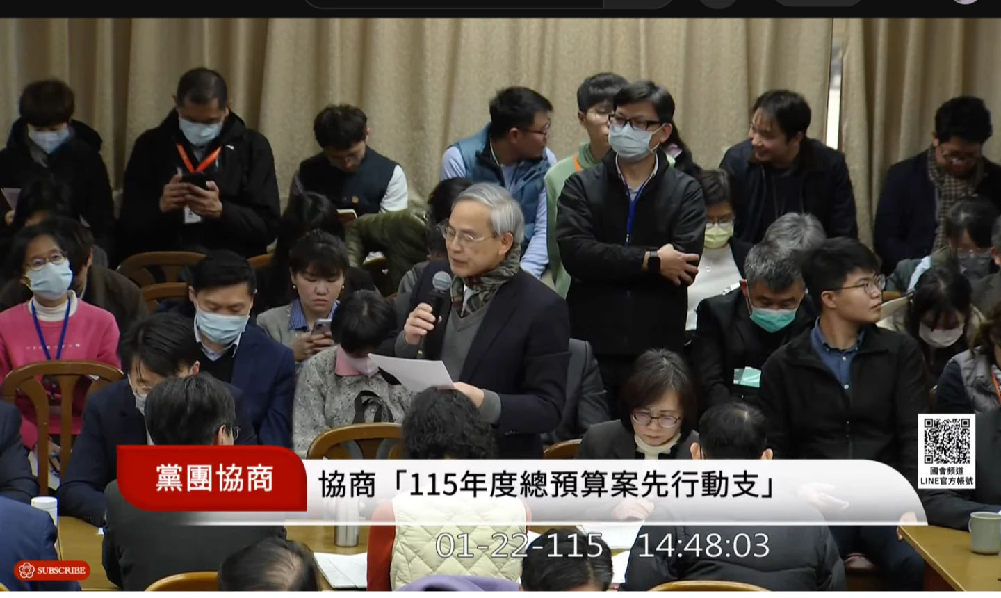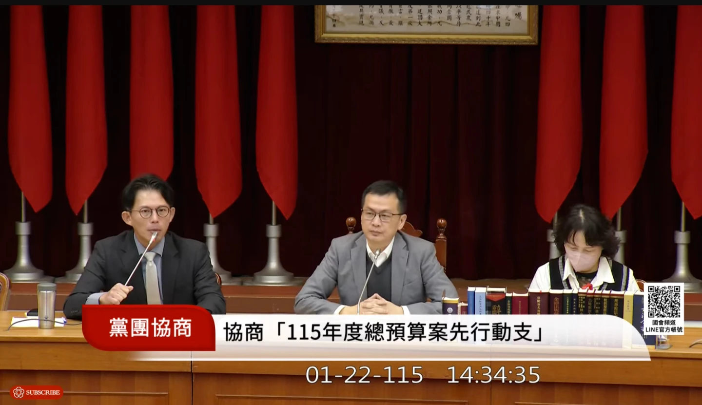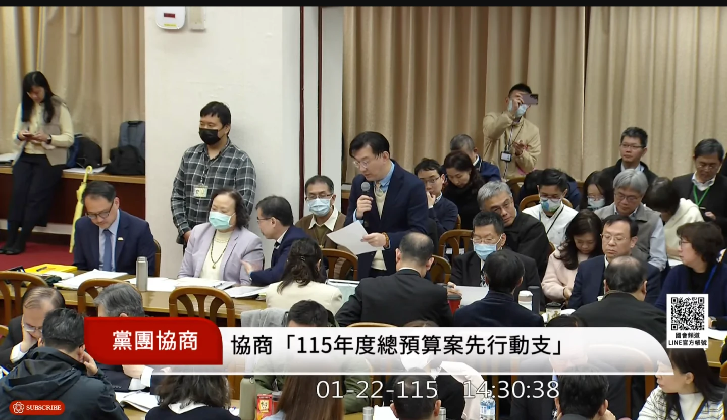 【記者施智齡/台北報導】3兆350億元的中央政府總預算案遭藍白阻擋,遲未審查,藍白抽出718億元的TPASS 2.0、治水等38項新興計劃先行動支,今天下午協商破局,民進黨團發言後離場抗議,會中各部會均表達所編列預算項目都重要,希望總體預算進入審查、充分討論,主持協商的國民黨團書記長羅智強酸,每個機關部會腳本一模一樣,念同一本經,「今天就全案保留,送院會處理。」