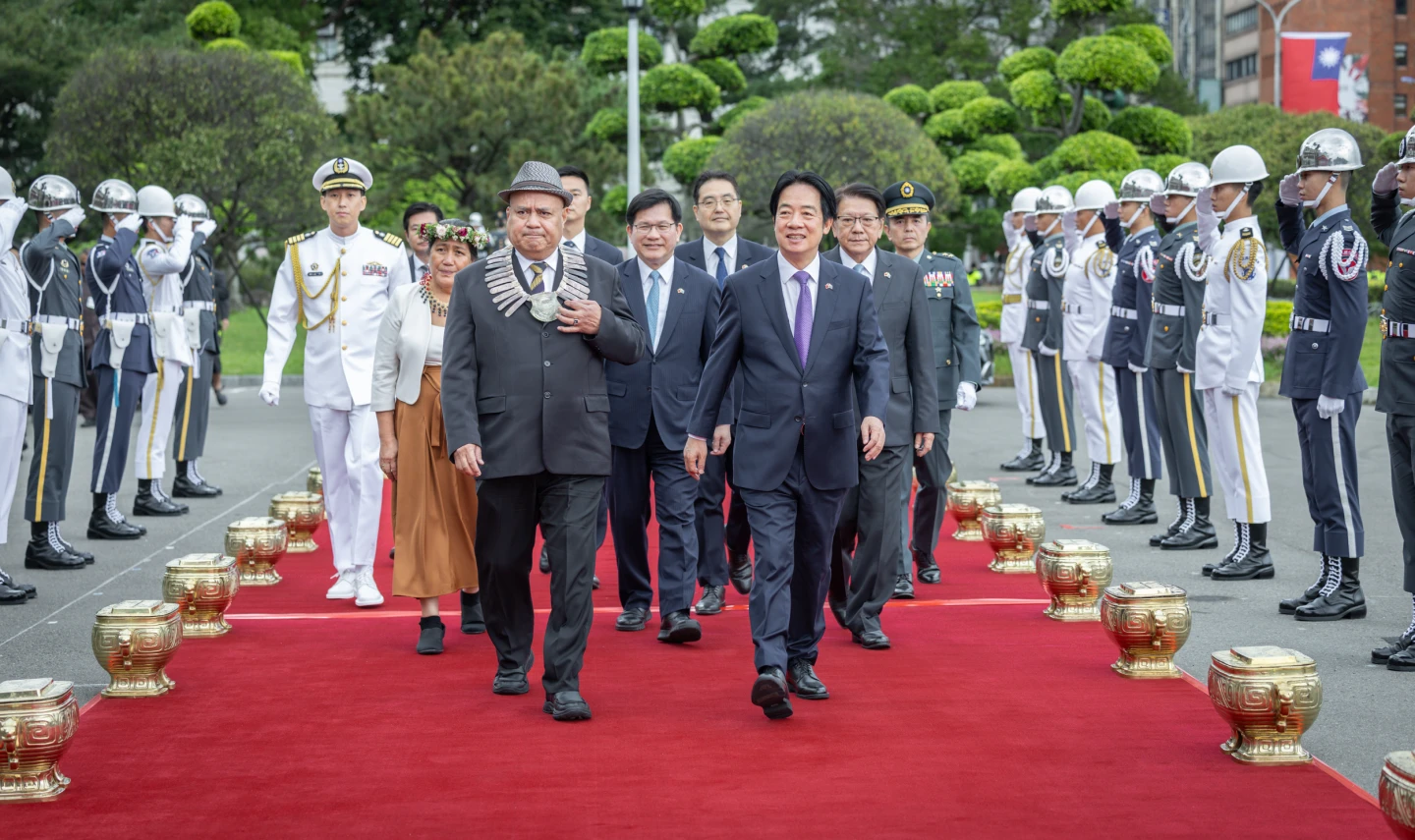 【記者施智齡/台北報導】友邦吐瓦魯國總理戴斐立(Feleti Teo)伉儷來訪,總統賴清德今(18日)上午以隆重軍禮歡迎,期盼台吐合作更提升,共同面對地緣政治與氣候變遷挑戰,促進雙方人民福祉及國家繁榮。