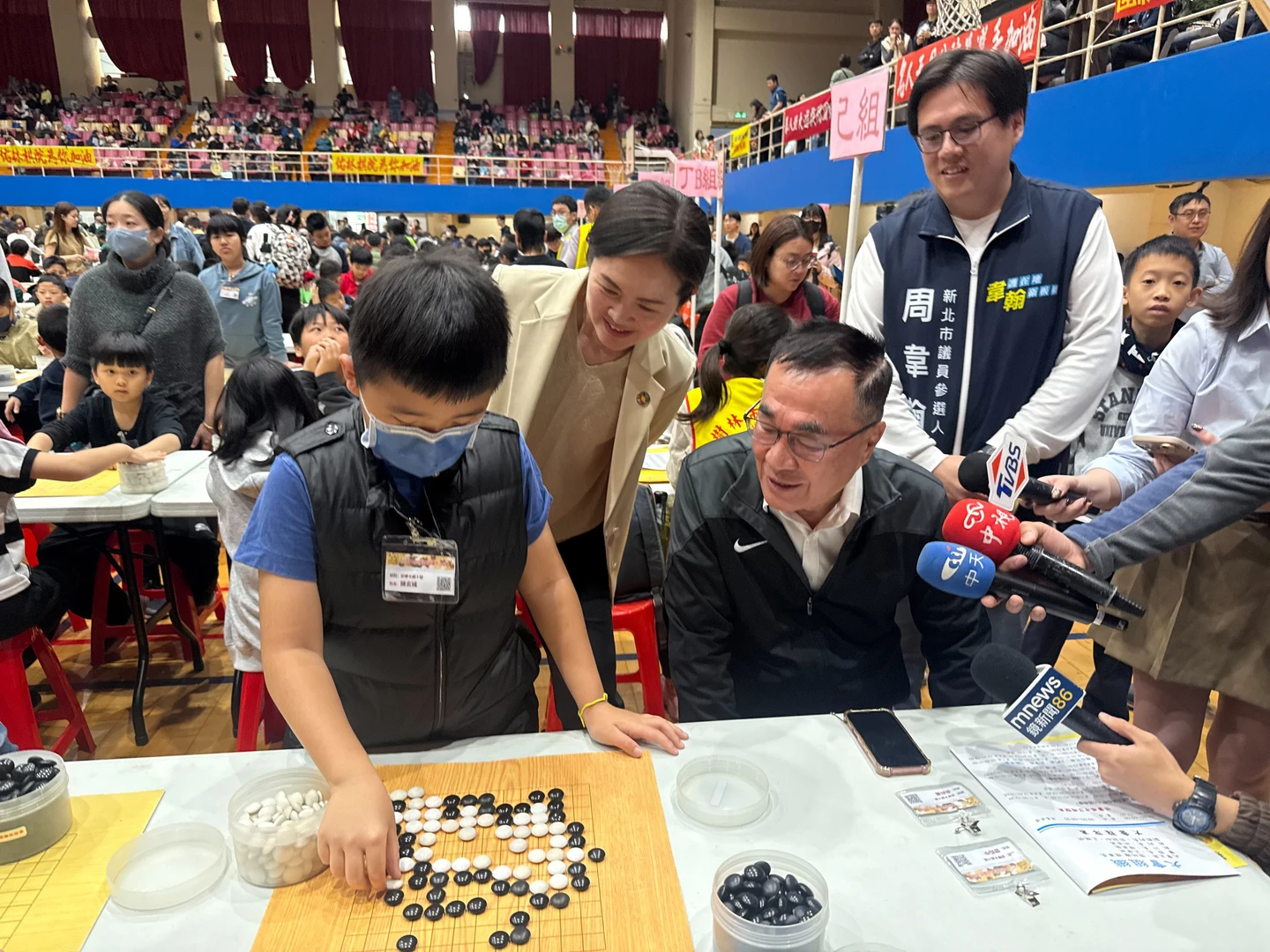 國民黨新北市長參選人李四川,今天上午前往新北市板樹體育館參加「2026年樹林棋藝盃全國圍棋公開賽」,他致詞時表示,雖然不會下圍棋,但非常認同圍棋能夠幫助孩子訓練思考與邏輯,並在賽前空檔看著小朋友們下棋。