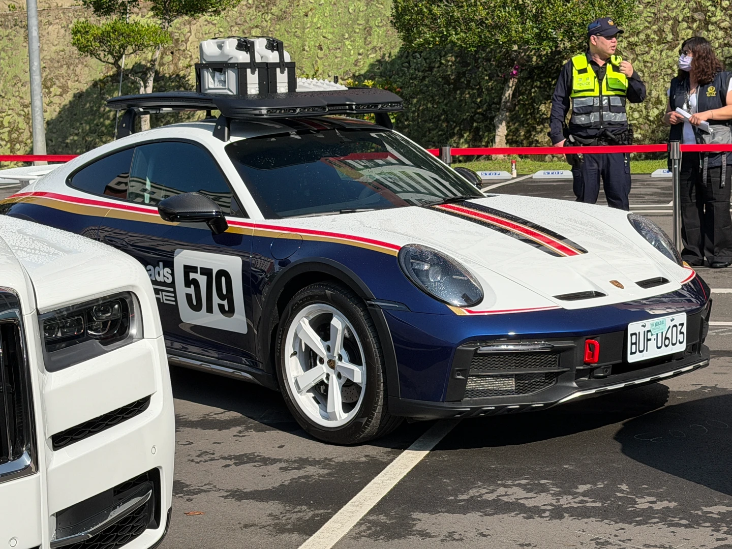除了法拉利296GTB因無法發動停放在和平大苑,其餘32台車全在警專廣場供民眾賞車競標。拍賣官王天業表示,拍賣順序不會按照表定的物件編號進行,會考量買氣、還有四大神獸的價格和特殊性,以較易拍出的熱門車款優先拍賣。