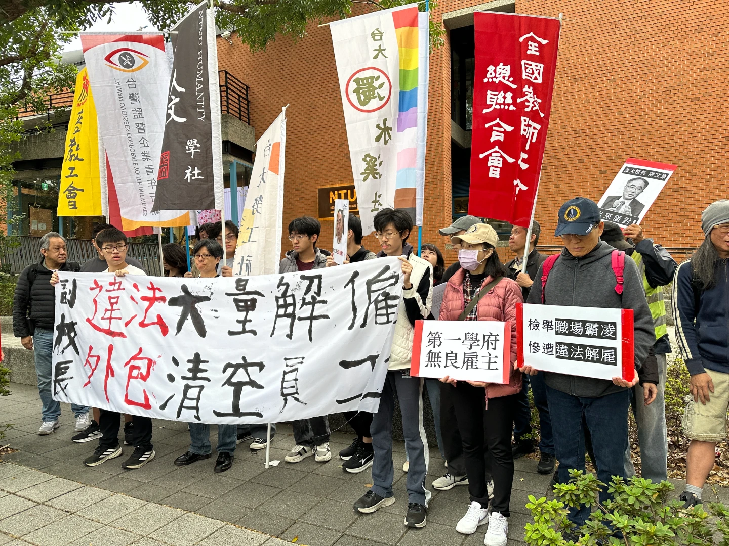 記者會後,高教工會與聲援團體,舉著布條走進台大校內,前往行政大樓欲遞交陳情書,沿路高喊「無良僱主,第一學府」等口號,而校安人員則在旁喊話,要求不要干擾上課。