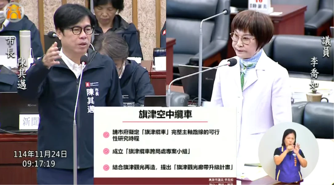 議員李喬如在質詢中指出,纜車計畫長期卡關的癥結點,包括涉及港區、軍區及海岸線等,導致用地與權責不明確、法規複雜,並缺乏市府跨局處的統籌和財務評估。她向市府提出三點具體建議:應擬定旗津纜車完整主軸路線的可行性研究時程、立即成立跨局處專案小組,並提出旗津觀光廊帶升級計畫,以實際行動推動旗津觀光發展。