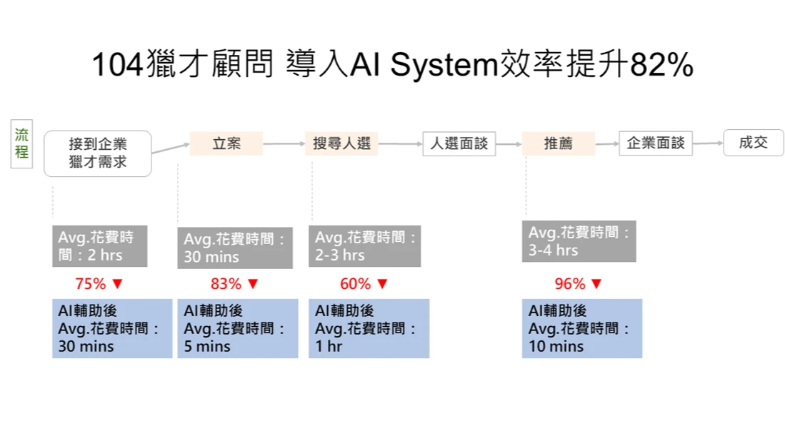 104人力銀行自行開發名為AI System的獵才工具,上線3個月後,已有超過7成獵才顧問啟用。