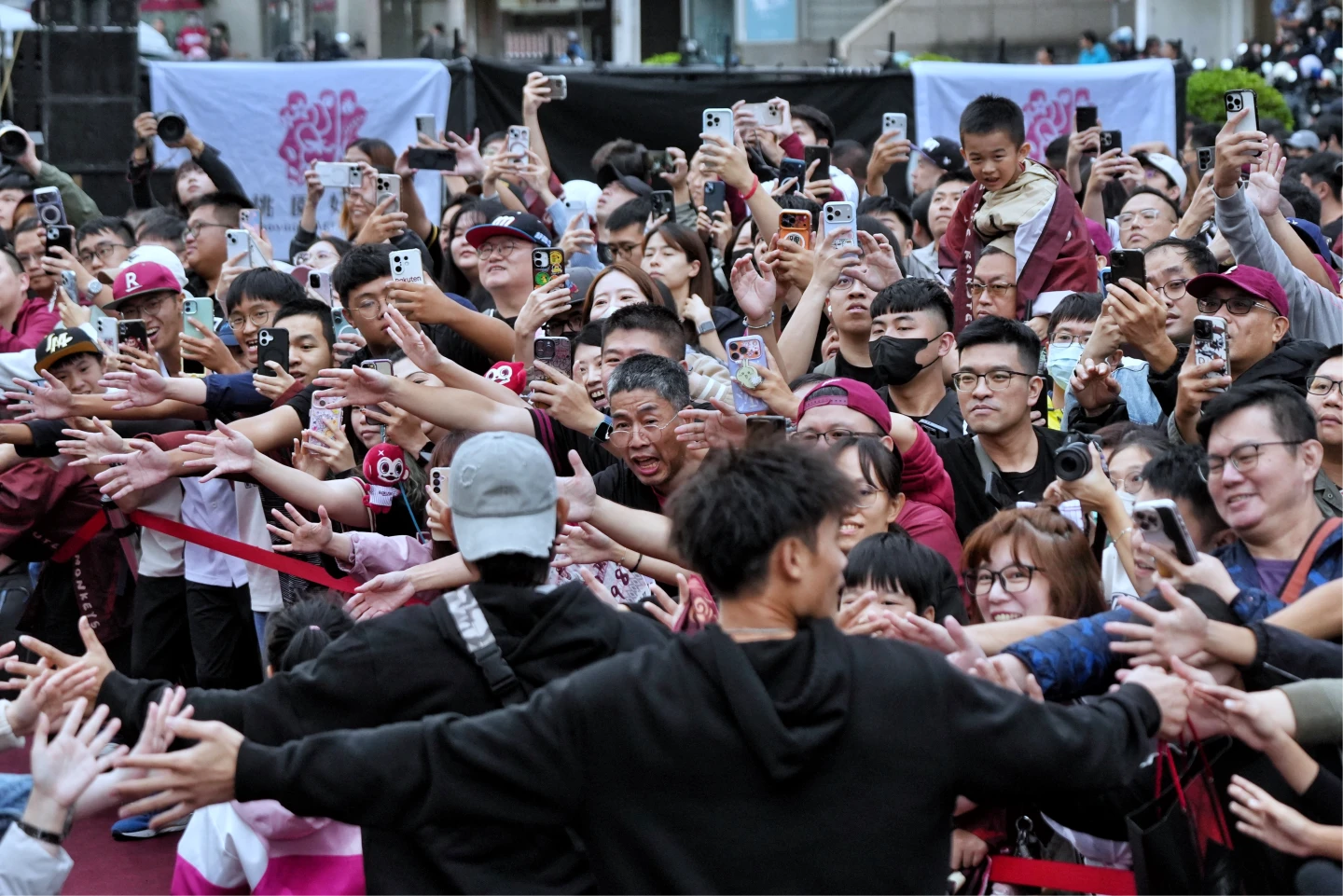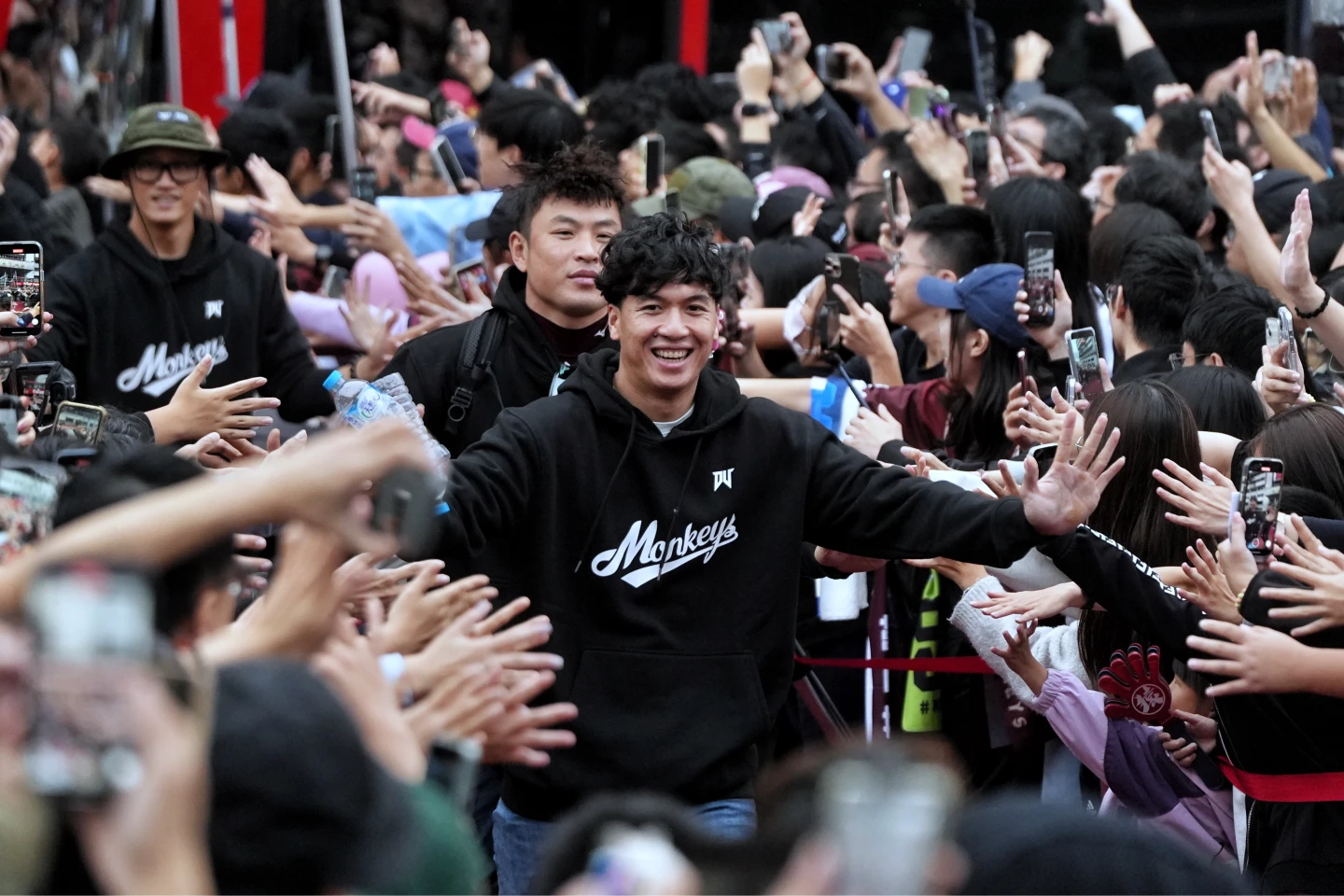 在長達約2小時的遊行路途中,沿途吸引大批桃猿球迷夾道歡迎,「精神領袖」林泓育就分享,感覺今年遊行人數比往年多上很多,他打趣說:「也可能是我們太久沒拿冠軍了,今年人感覺很多,路上有看到幾個行動不便的老人家也是在路邊跟我們揮手,很感動。」