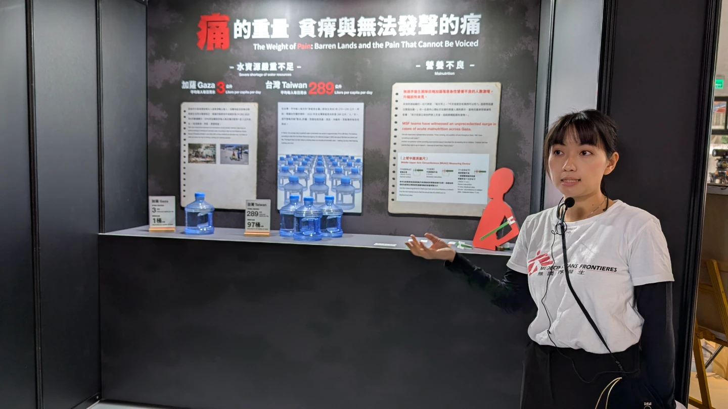 無國界醫生「痛,我願同行」人道醫療展今天在華山1914文創產業園區-中7B館熱鬧開幕,透過「痛的重量」、「痛的共鳴」、「我願同行」3大展區解構全球醫療人道議題。「痛的重量」以沉浸式空間提供視覺與聽覺體驗,呈現當地居民的極端困境,例如加薩地區巴勒斯坦人平均每人每日可用水量僅3公升,而台灣為289公升,差距97倍。「痛的共鳴」則以互動遊戲揭示無國界醫生全球工作與亮點,並邀請觀眾化身地中海上難民,走入錄音亭訴說心路歷程,體會救援現場的真實情境。