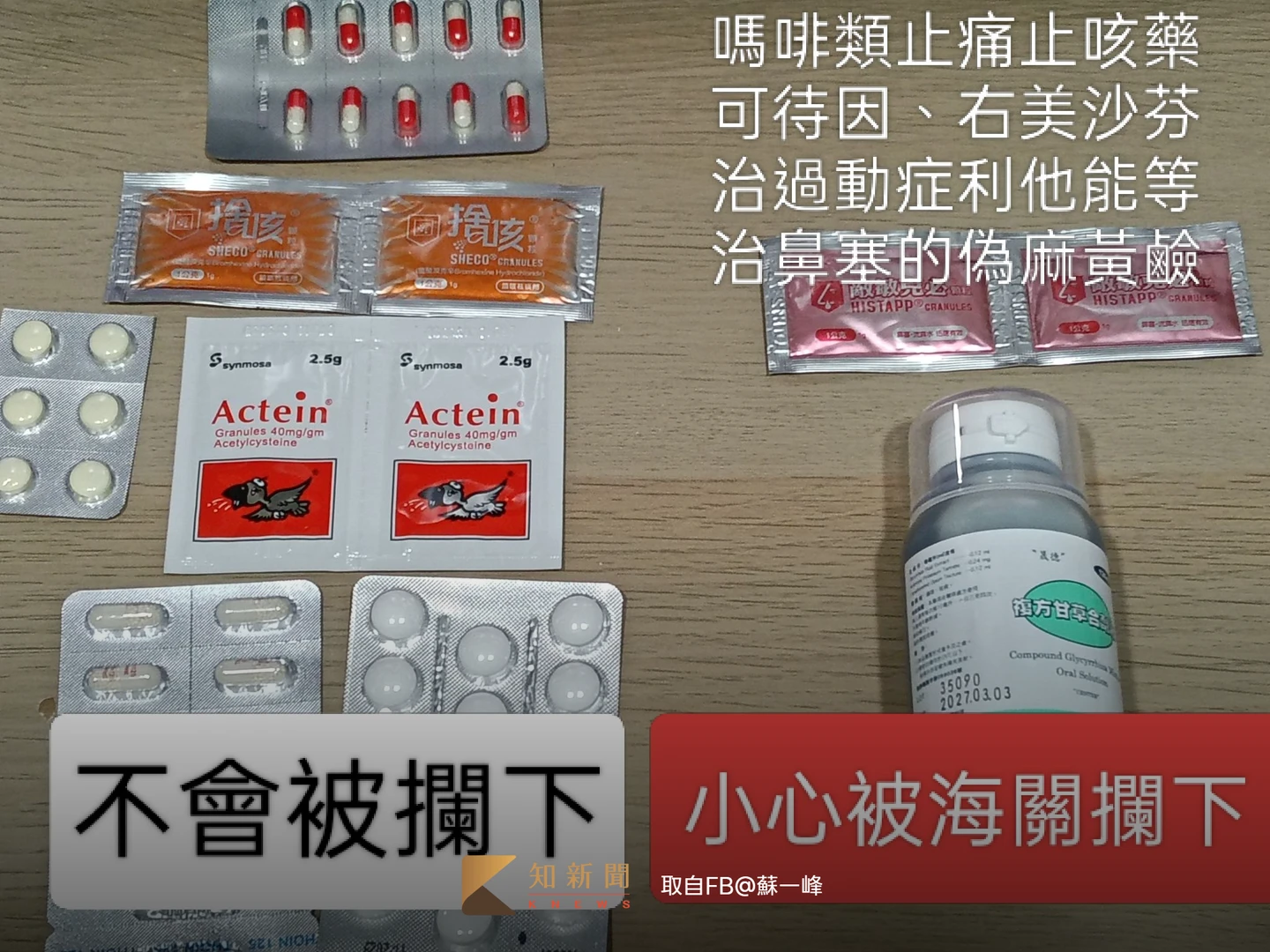 【記者於維奕/綜合報導】過年期間不少民眾選擇出國旅遊,而出國準備常備藥是常識,但如果不小心帶錯成分,小心還沒玩到就先進了警察局。胸腔科醫師蘇一峰今天在社群平台分享,有國人前往韓國旅遊時,因攜帶台灣常見的止咳藥物,竟被海關攔下盤查超過一個小時。蘇一峰提醒4類台灣常見藥物最危險,出國帶藥注意事項,一文報你知。