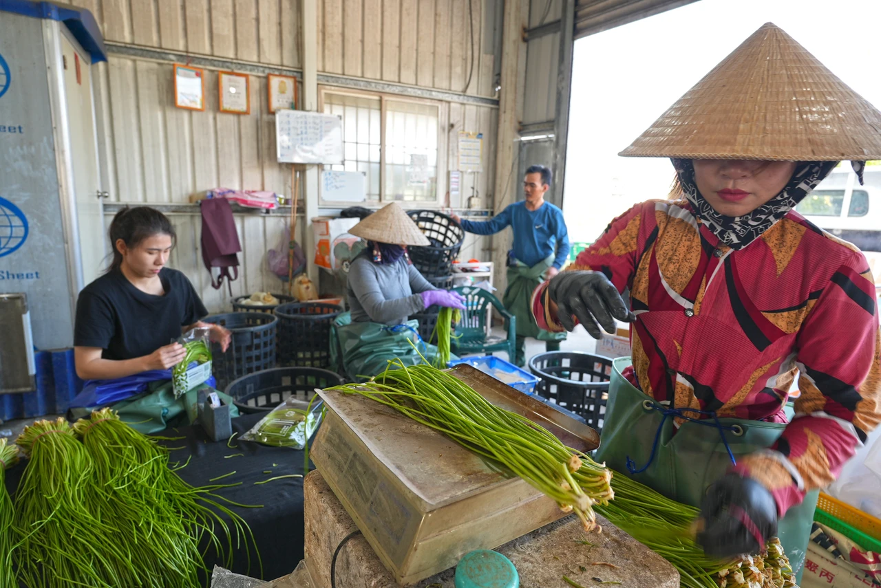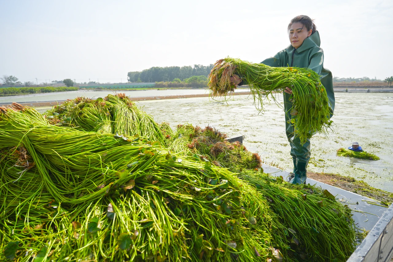 不過採收必須長時間泡在水裡,夏季上層曝曬悶熱、池水卻冰涼,冬季更是刺骨。採收後,還得進入沒有空調的加工廠,進行剪根、清洗、分選、包裝等工序,反覆低頭、長時間泡水,是另一道考驗。