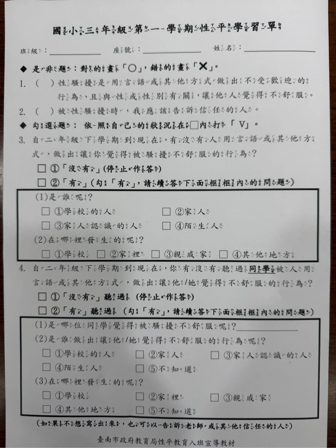 性平課奏效!女童勇填「性平學習單」揭穿狼師