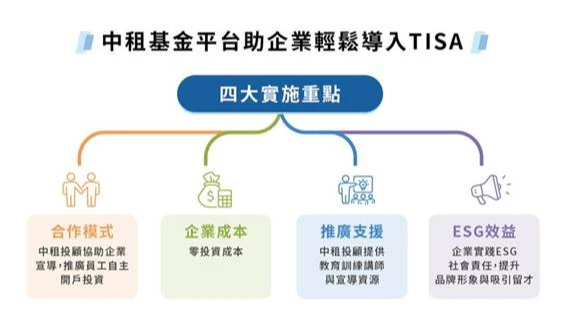 企業導入TISA能帶來什麼好處?中租基金平台總經理蘇皓毅歸納三大效益,提升企業形象與競爭力、強化人才吸引與留任優勢,以及體現ESG社會責任。他強調:「在人才競爭白熱化時代,企業主動提供退休理財教育資源,不僅能幫助員工建立更完善的退休規劃觀念,更是兌現企業照顧員工福祉、永續經營承諾的具體行動。」