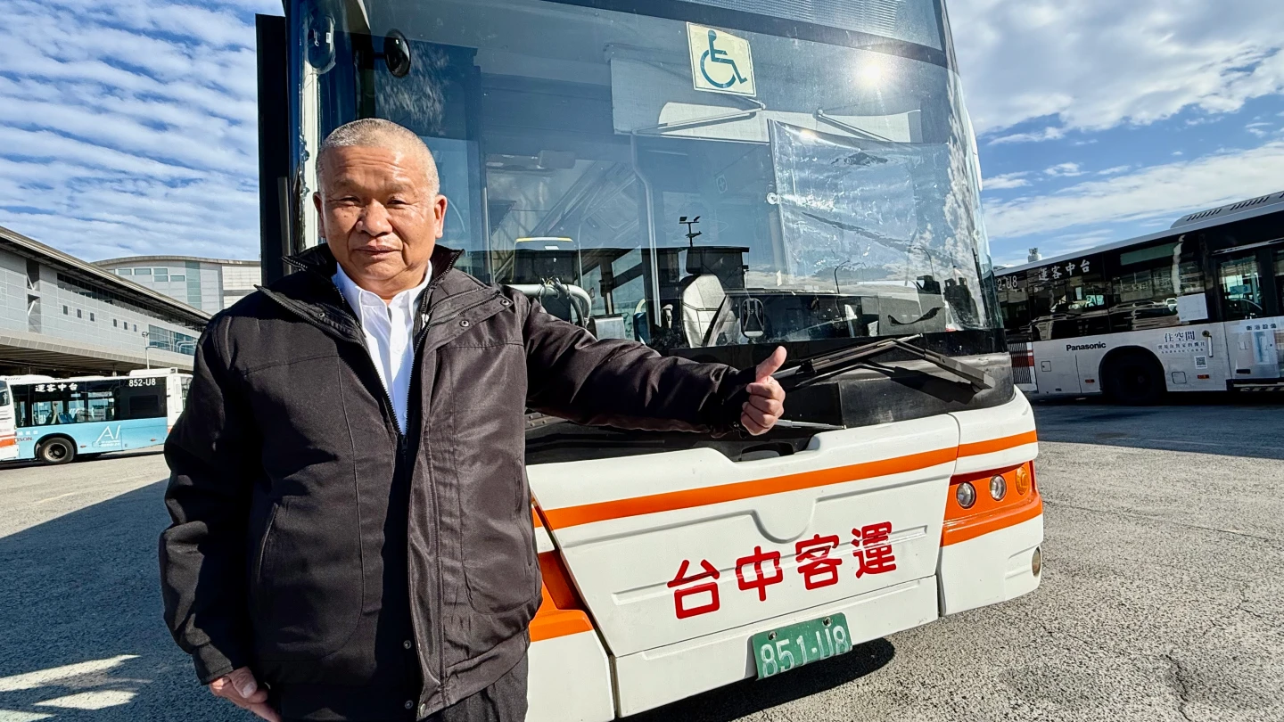謝竣吉原本經營貨車運輸,因載貨量減少結束生意,轉而投入公車駕駛行列,為熟悉路況與站點,他從隨車學習3天延長到10天,下班後還騎機車實地跑路線,雖然學得慢,但求記得牢,他目前服務下午班,為維持精神狀態,嚴格要求規律作息、養足體力,珍惜每一次為乘客服務的機會。