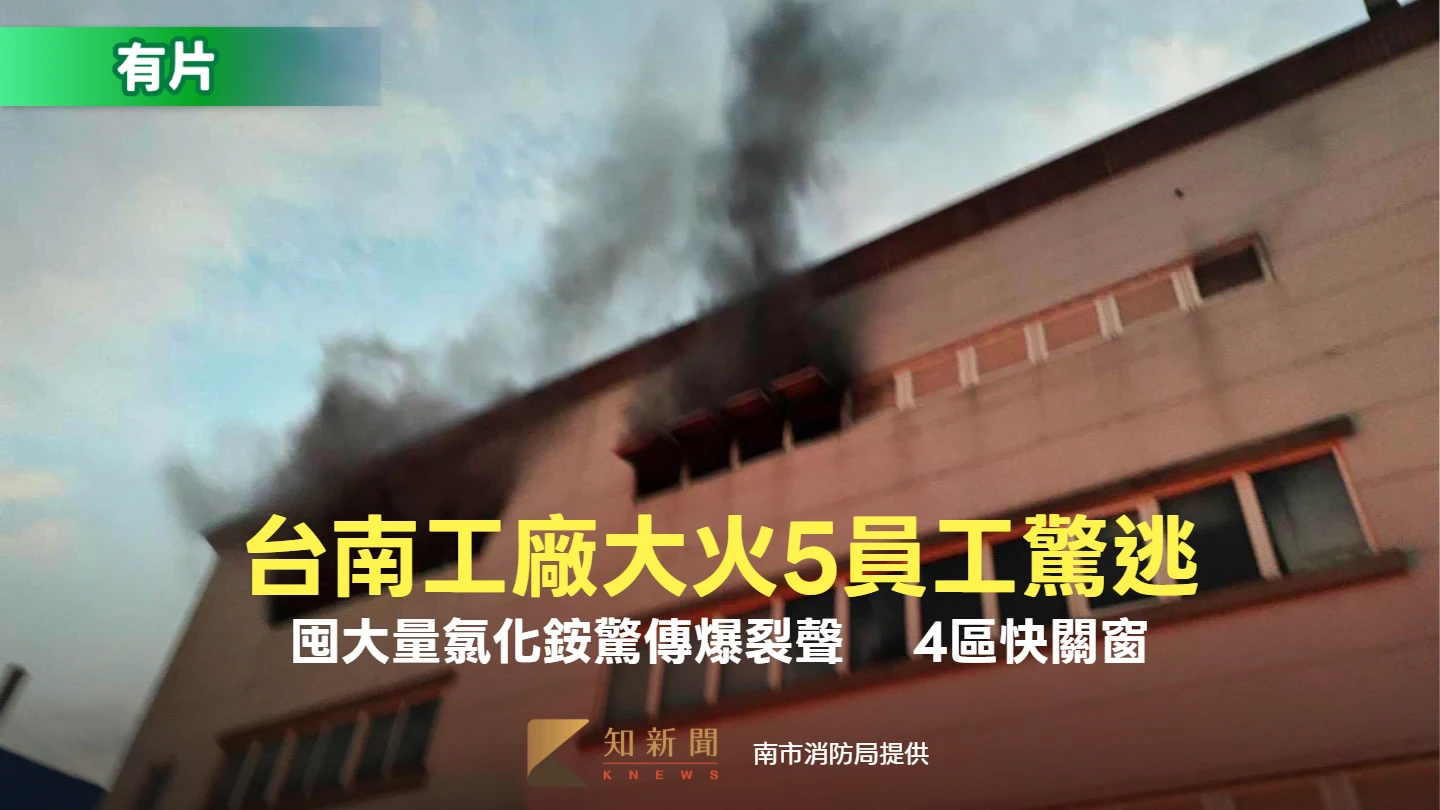 黑煙片|台南靶材龍頭工廠大火5員工驚逃!囤大量氯化銨驚傳爆裂聲  4區快關窗