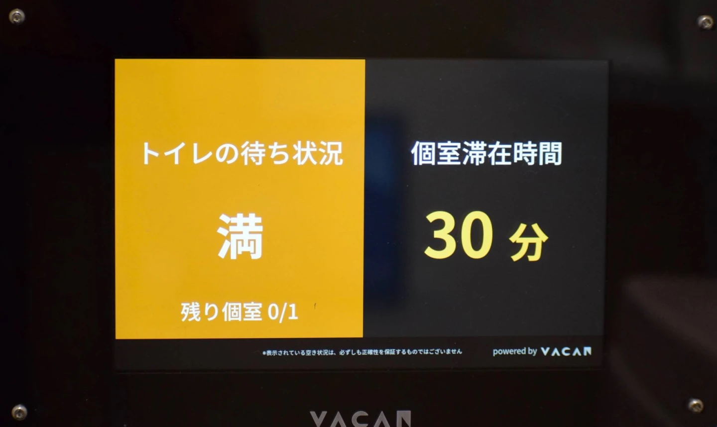VACAN公司開發的AirKnock技術,透過在廁所隔間內安裝感應器和螢幕,讓正在使用廁所的人知道自己已經進來多久,和廁所是否客滿等資訊,以判斷是否該讓其他人上了。