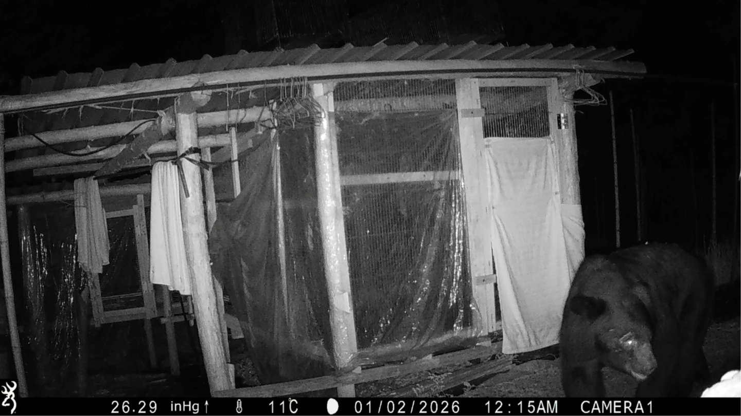 【記者王勇超/嘉義報導】阿里山鄉達邦村近日再度出現台灣黑熊闖入工寮覓食,引發部落居民不安。林業及自然保育署嘉義分署指出,自去年12月31日接獲村民通報後,經現勘與紅外線相機監測,確認黑熊在元旦至1月3日連續三天現蹤,甚至每日出沒工寮。嘉義分署說,「食物管理」是防範黑熊靠近聚落的核心,戶外垃圾、廚餘、肥料及寵物飼料應妥善收納置於室內,共同維護人熊安全。