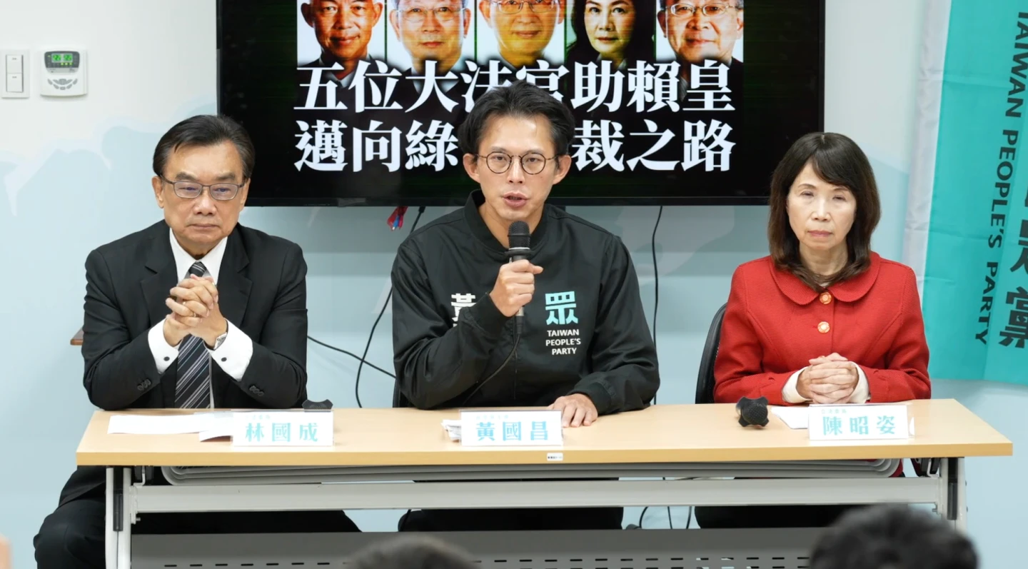 民眾黨19日下午緊急召開「回應《憲訴法》部分條文遭宣告違憲」記者會,黃國昌批評,五位「綠色大法官」組成所謂憲法法庭,作成114年憲判字第1號判決,行徑形同協助總統賴清德走向專制獨裁之路,該判決在民主憲政秩序下只是廢紙一張。