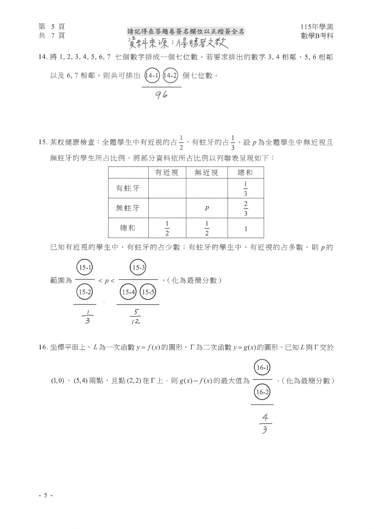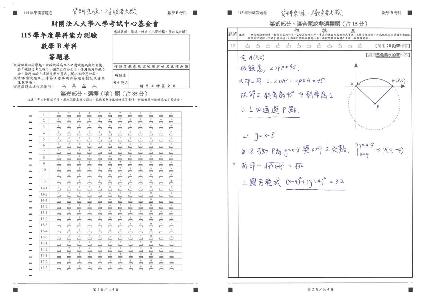 參考解答由得勝者文教提供,正確答案仍以大考中心公布為準。