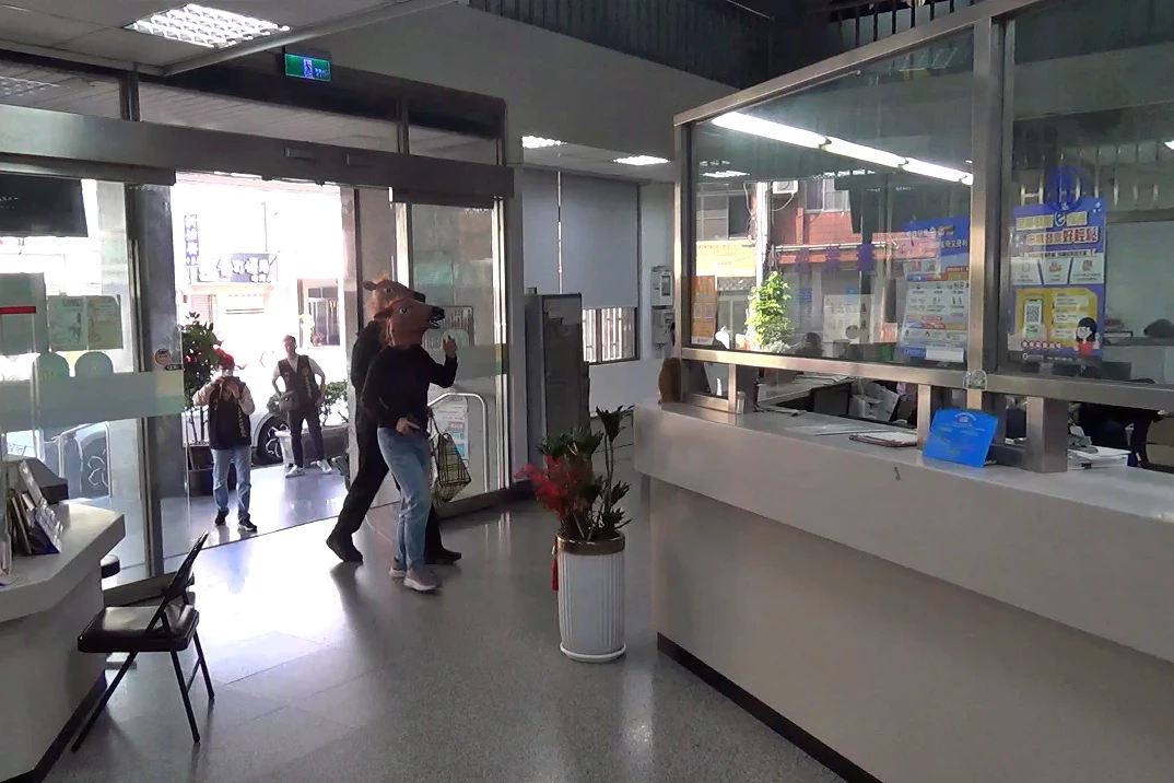歸仁分局表示,馬年到,昨天特別攜手關廟區農會,舉辦一場極具創意的防搶演練。由同仁與警專實習生戴上搞笑又帶點殺氣的馬頭面具,化身搶匪持槍衝入農會,大聲吆喝行員交付現金。農會行員冷靜應對,一邊安撫歹徒分散注意力,一邊暗中啟動警報機制,展現平日精實的訓練成果。