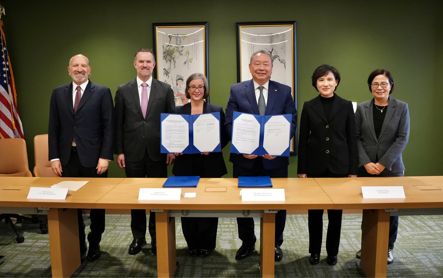 台美經貿官員2月12日在美國簽署對等貿易協定。取自USTR的X平台
