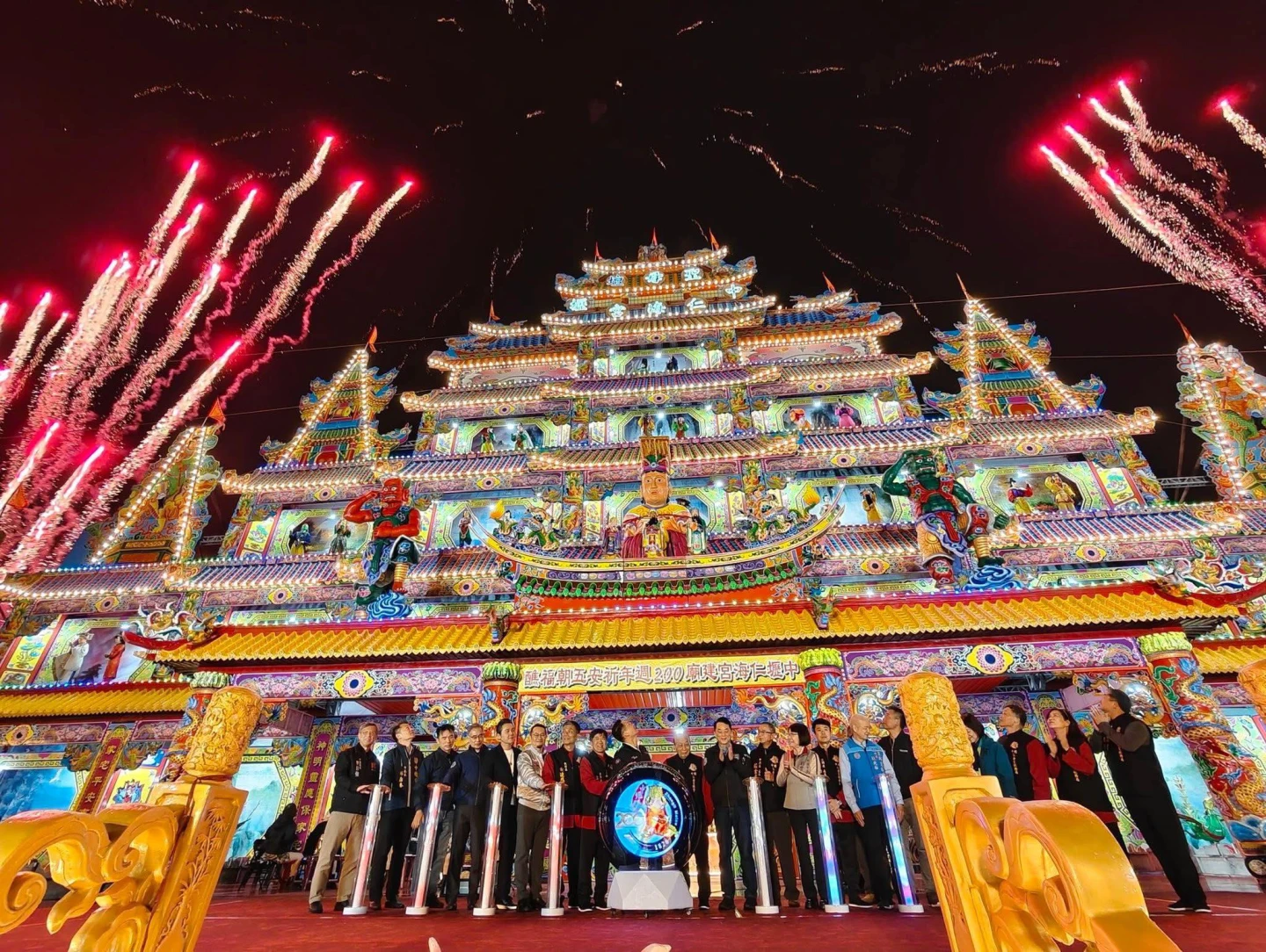今晚9時進行仁海宮謝壇花火秀,聖母壇主醮區將施放200秒璀璨煙火,隆重為200周年祈安五朝福醮畫下最美的句點。
