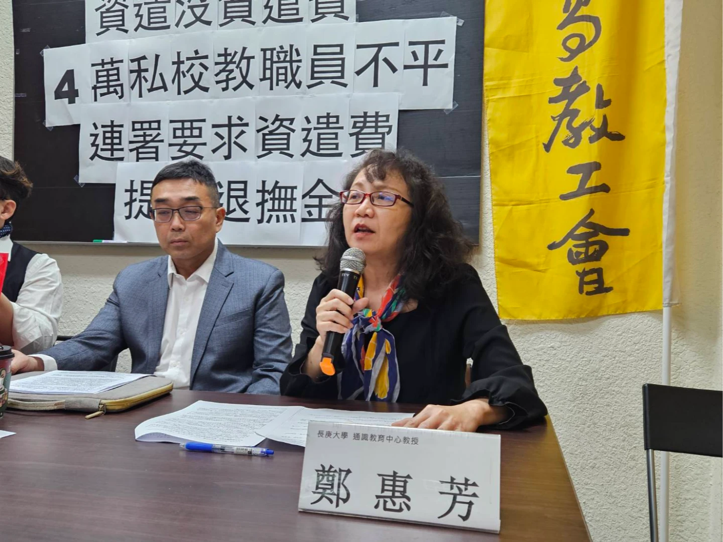 長庚大學教授鄭惠芳表示,近10多年來,看到很多私立大學老師,因為學校縮編、退場,被非自願離職、資遣,有人50幾歲就失去工作,房貸還在繳、孩子還在讀書。她強調,少子女化浪潮下,許多私立大學即使沒有要立刻退場,也會想要縮編,越來越多老師工作不保,應修法給予非自願離職慰助金,也要提高退休金提撥率。
