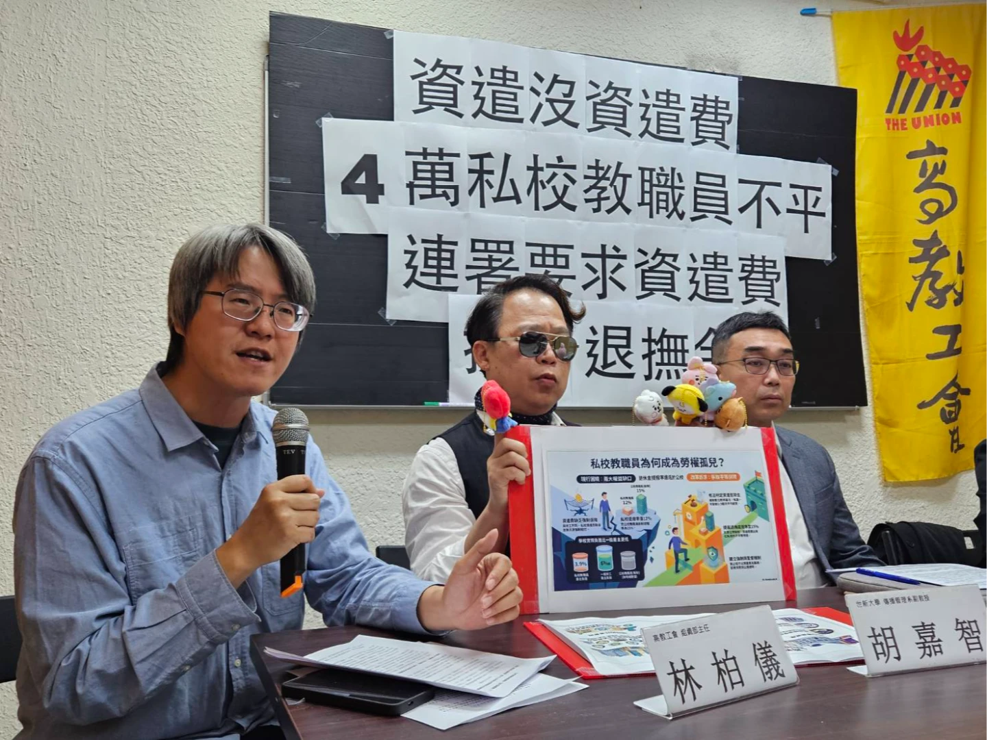 林柏儀說,高教工會今天開始發起「私校教職員不該是勞權孤兒,要求修法保障資遣慰助金、提高私校退撫」連署,邀請大專校院教職員生與社會大眾加入連署,兩項具體訴求包含立法保障私校教職員資遣費,每1年資發給0.5個月,以及退撫提撥率提高到15%,連署達到一定數量後,會到立法院、教育部提交連署內容。