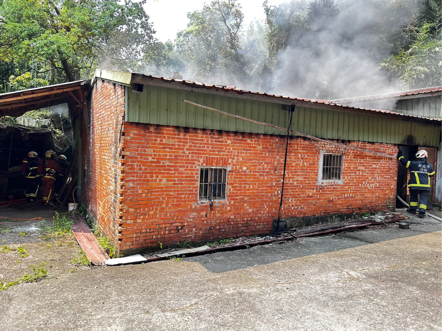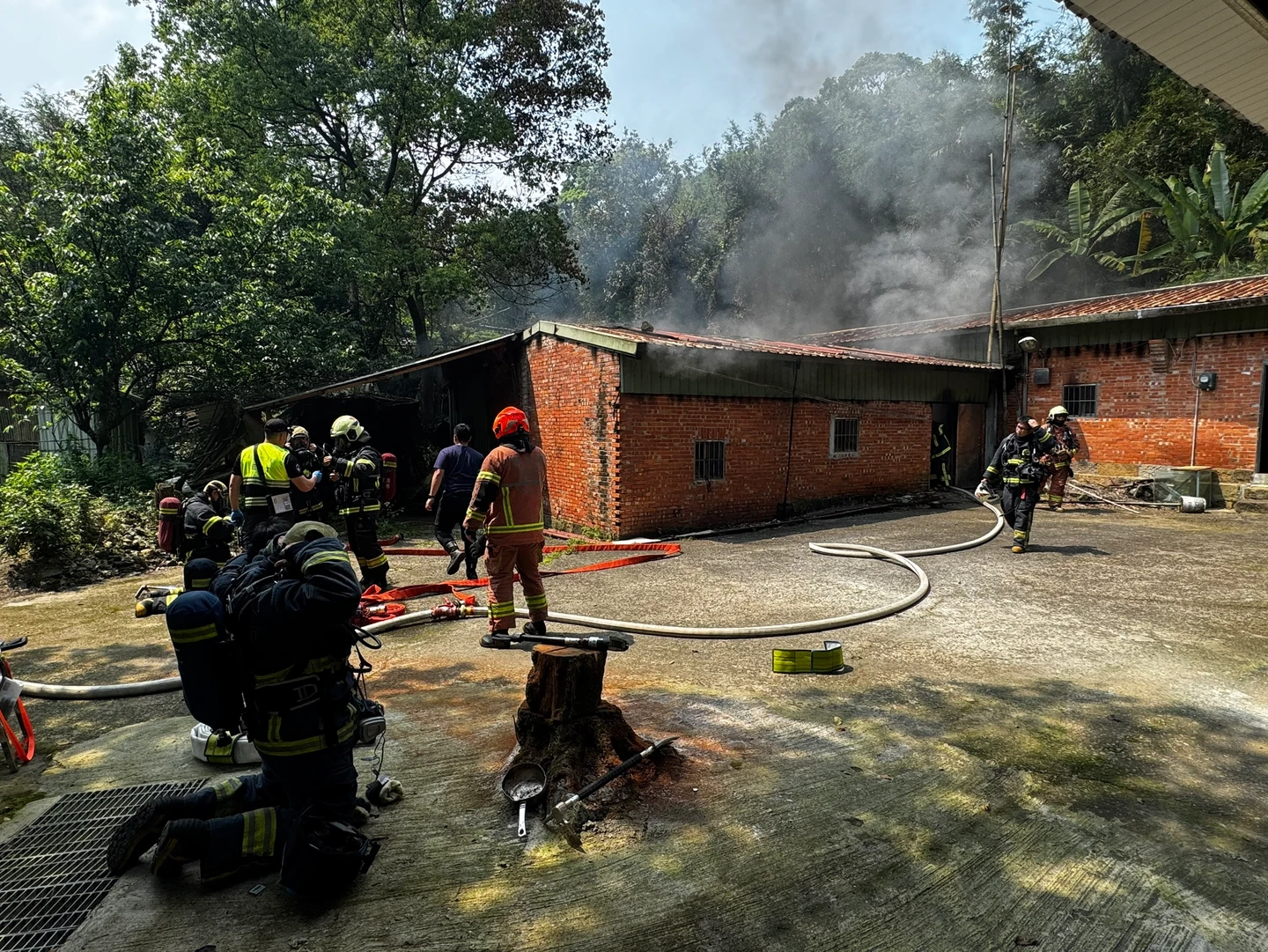 消防局受理出動各式搶救車輛15車、消防員33人趕抵,現場火煙已向外竄燒。消防員立即布水線入內搜救,於三合院廚房發現倒地鄭姓老翁,協助安全救出屋外,檢視其肢體及臉頰、後頸有大面積3度燒燙傷,當場已無呼吸心跳,緊急協助送醫急救,目前命危未脫離險境,醫院持續搶救。