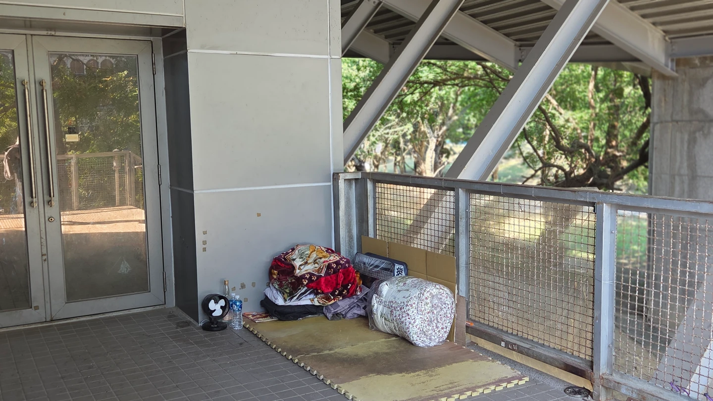 直擊|新莊運動中心淪街友聚集地!佔地擺家當、睡角落 民眾傻眼:沒人管嗎