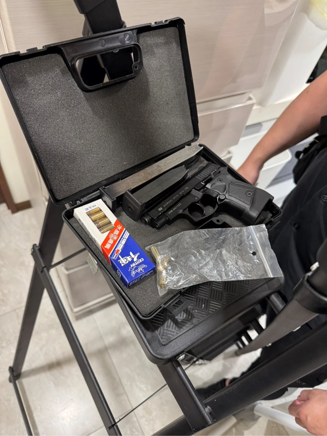 新北市刑大偵一隊獲報立即派員追查,本月16日時機成熟,持拘票、搜索票兵分四路,前往基隆、新北淡水、新店、嘉義等處,逮捕主嫌威震集團威揚會會長郭男(42歲)在內五人,查扣土耳其製衝鋒手槍1把(ZORAKI 914)、子彈13顆、現金20萬元、本票30張(金額763萬元)等相關證物,一併帶回查辦,警詢後依《組織犯罪防制條例》、《槍砲彈藥刀械管制條例》、《刑法》妨害自由、恐嚇、重利等罪嫌移送法辦,並持續溯源追查該組織其他不法事證。
