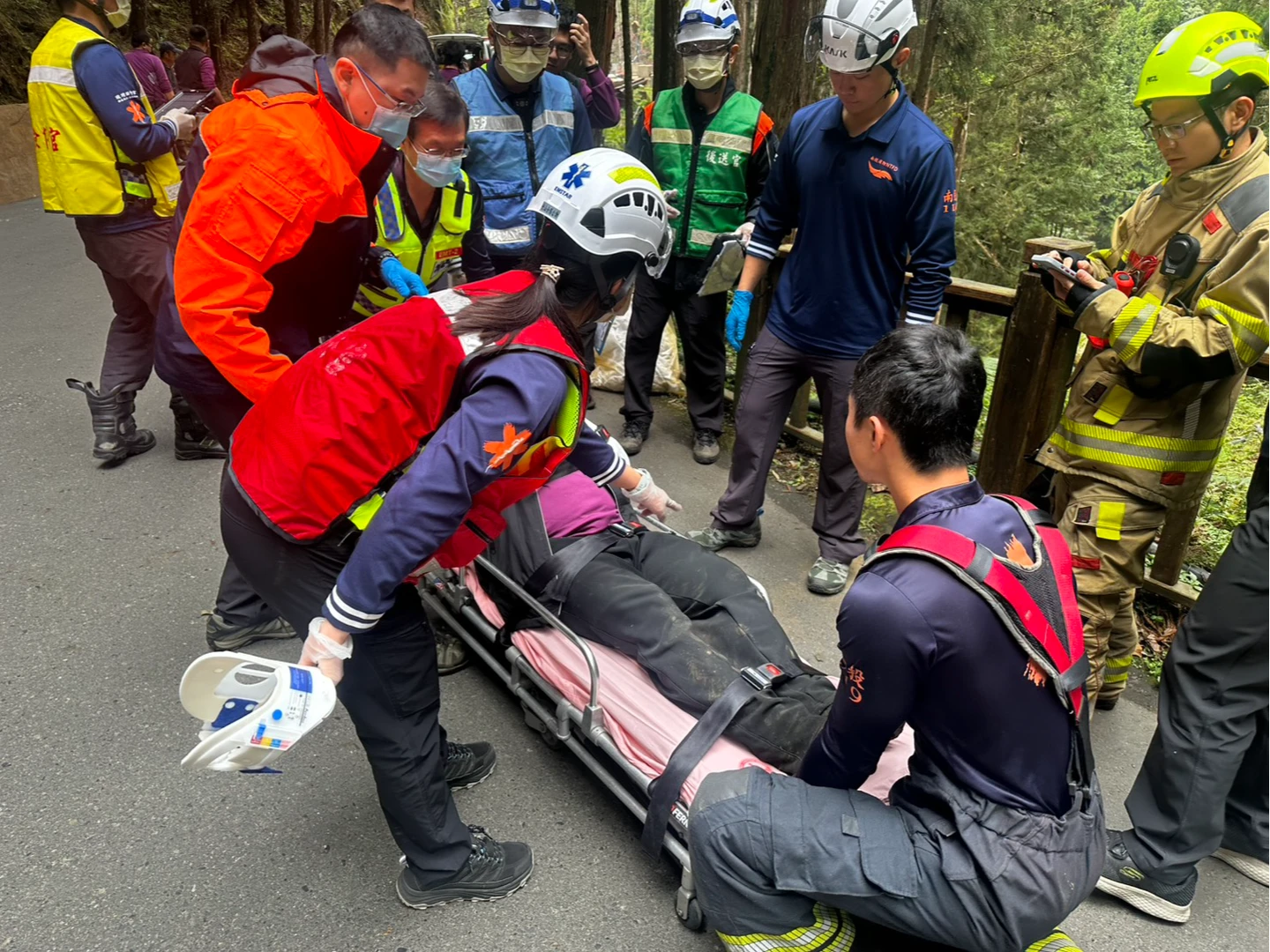 消防局第三大隊接獲通報後,立即啟動緊急救援機制。由鹿谷分隊及竹山分隊消防人員率先趕赴現場,共出動4輛消防車、8名消防人員,並同步調派鹿谷、名間、水里、南投、松柏嶺及鹿谷衛生所等共8輛救護車前往支援。