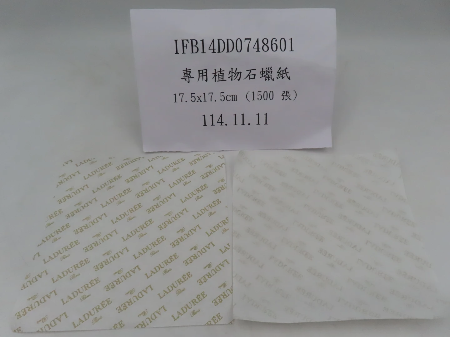 食藥署北區管理中心主任劉芳銘說,拉朵蕾股份有限公司從法國輸入的「LADUREE」石蠟紙,製造廠為「MILHE & AVONS」,經模擬盛裝食物的環境,在25℃正庚烷放置1小時,溶出試驗結果檢出蒸發殘渣581ppm。