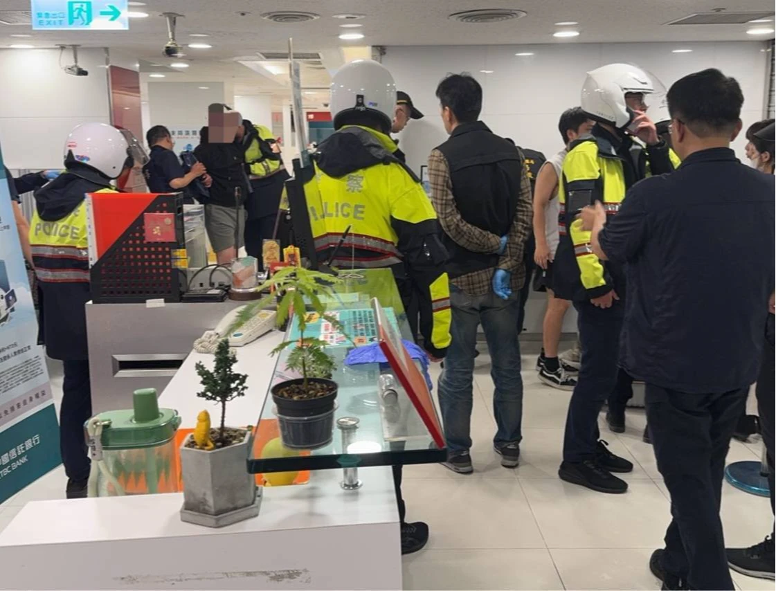 據了解,歹徒為31歲林姓男子,因缺錢而蒙面持玩具槍和假手榴彈進入銀行,要求現場民眾和行員放下手機,並將一名保全人員押往金庫區域。